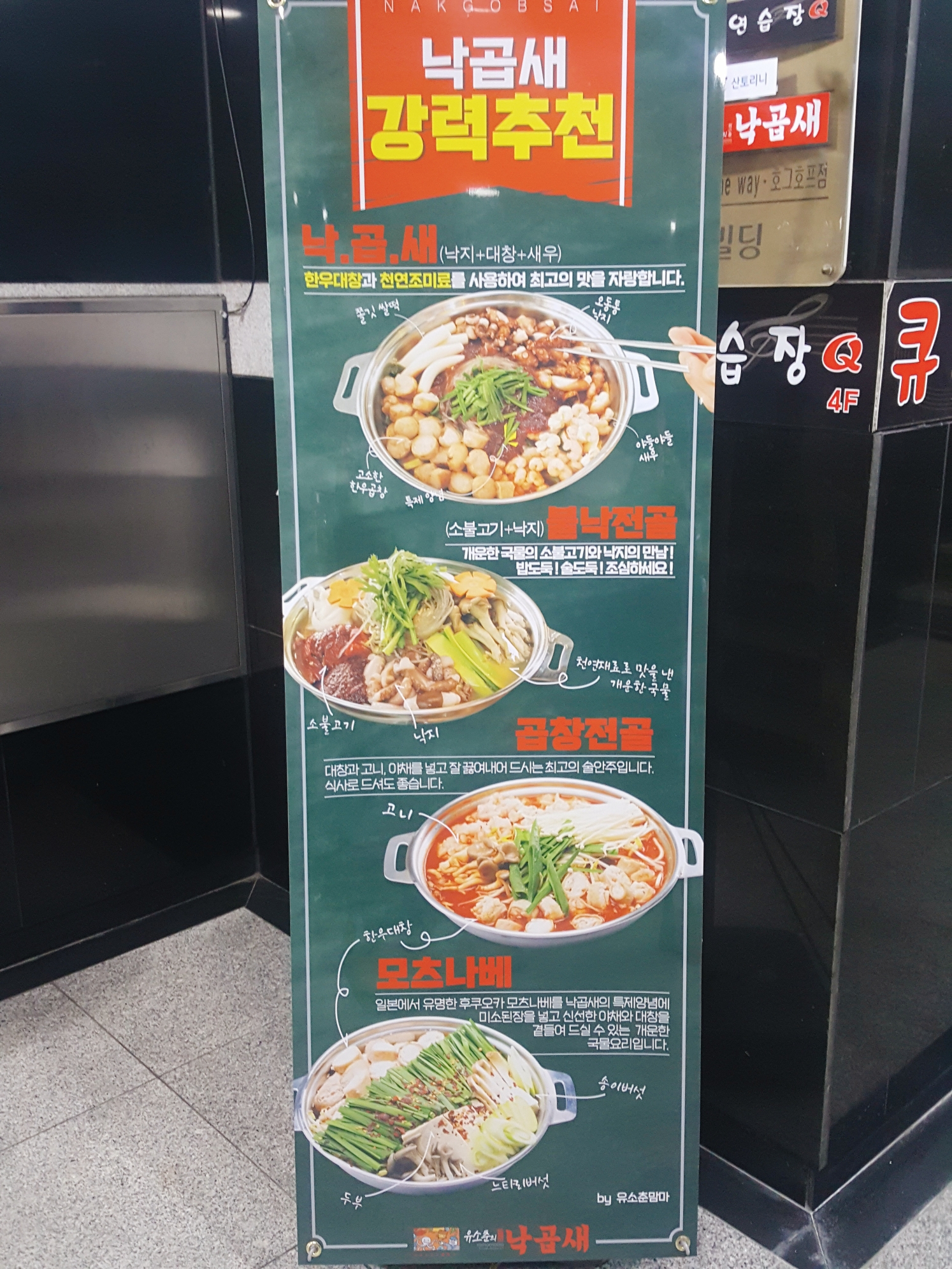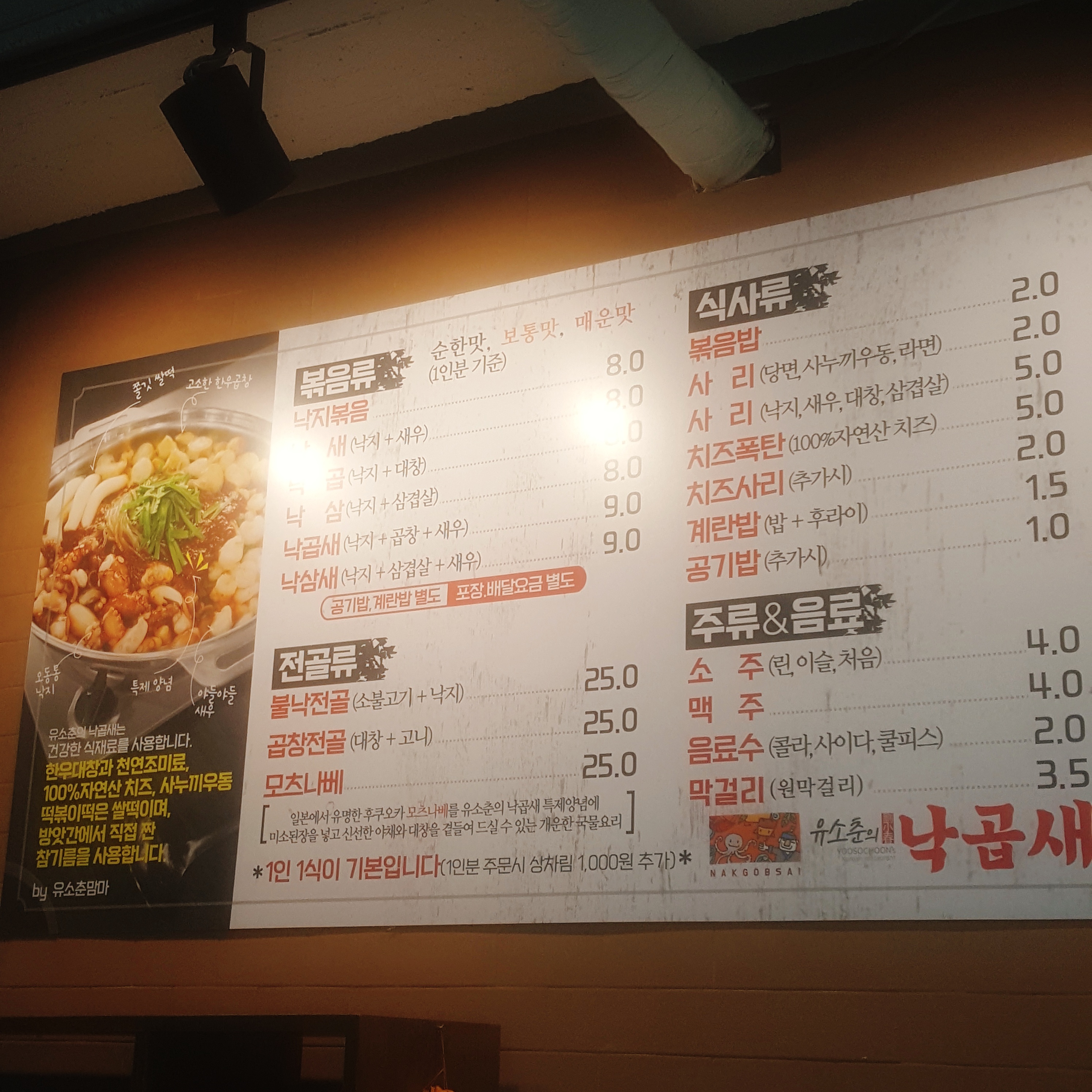 유소춘의 낙곱새 메뉴입니다.