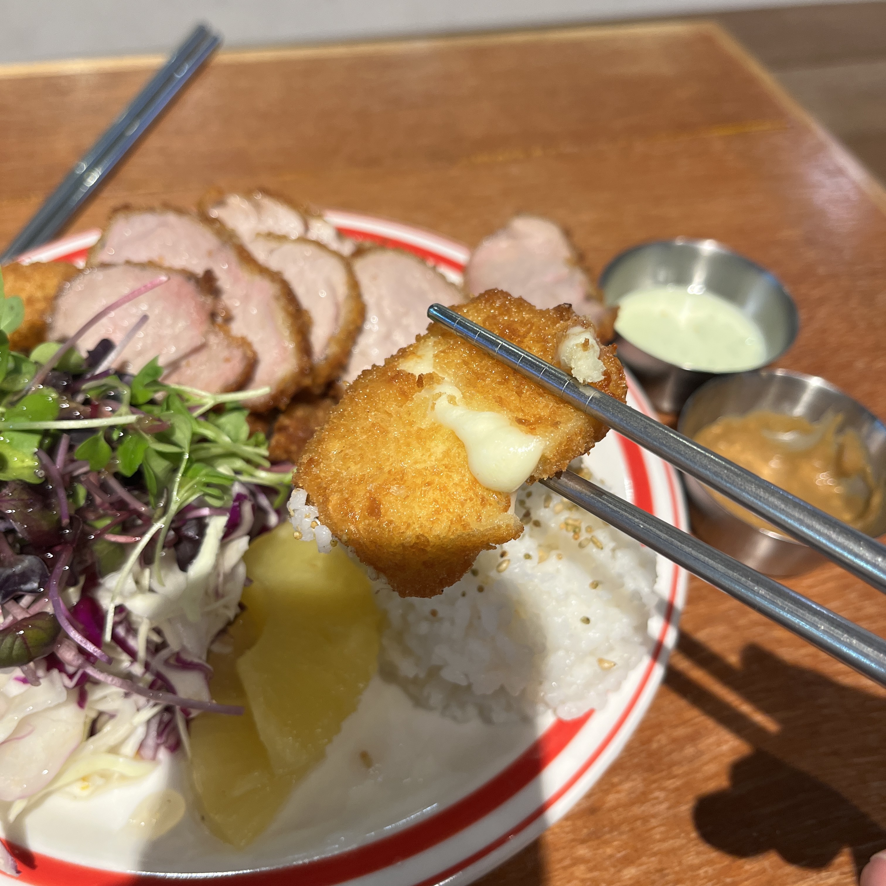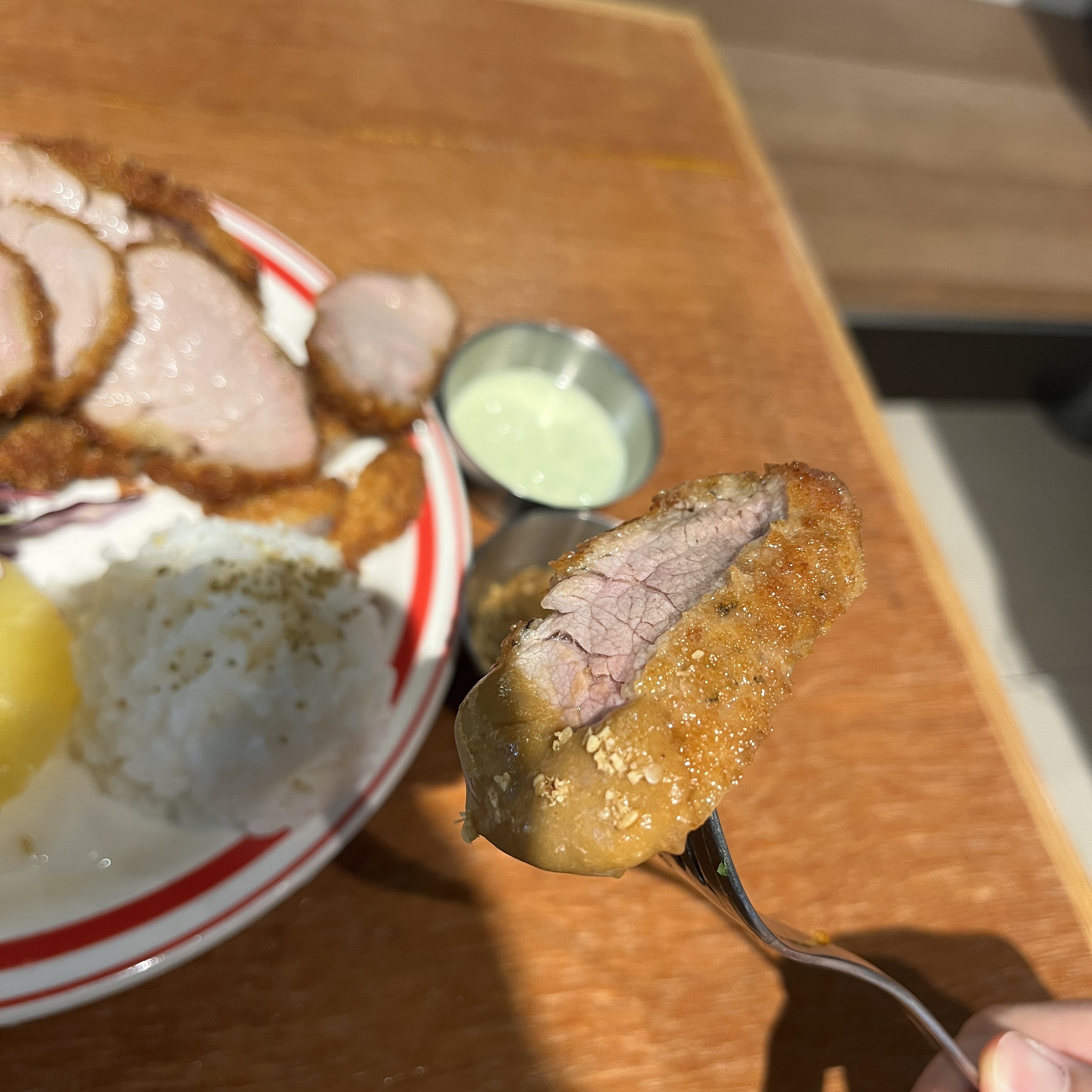 돈까스플레이트는 밥, 등심돈까스, 안심돈까스 그리고 해쉬브라운이 제공됩니다.