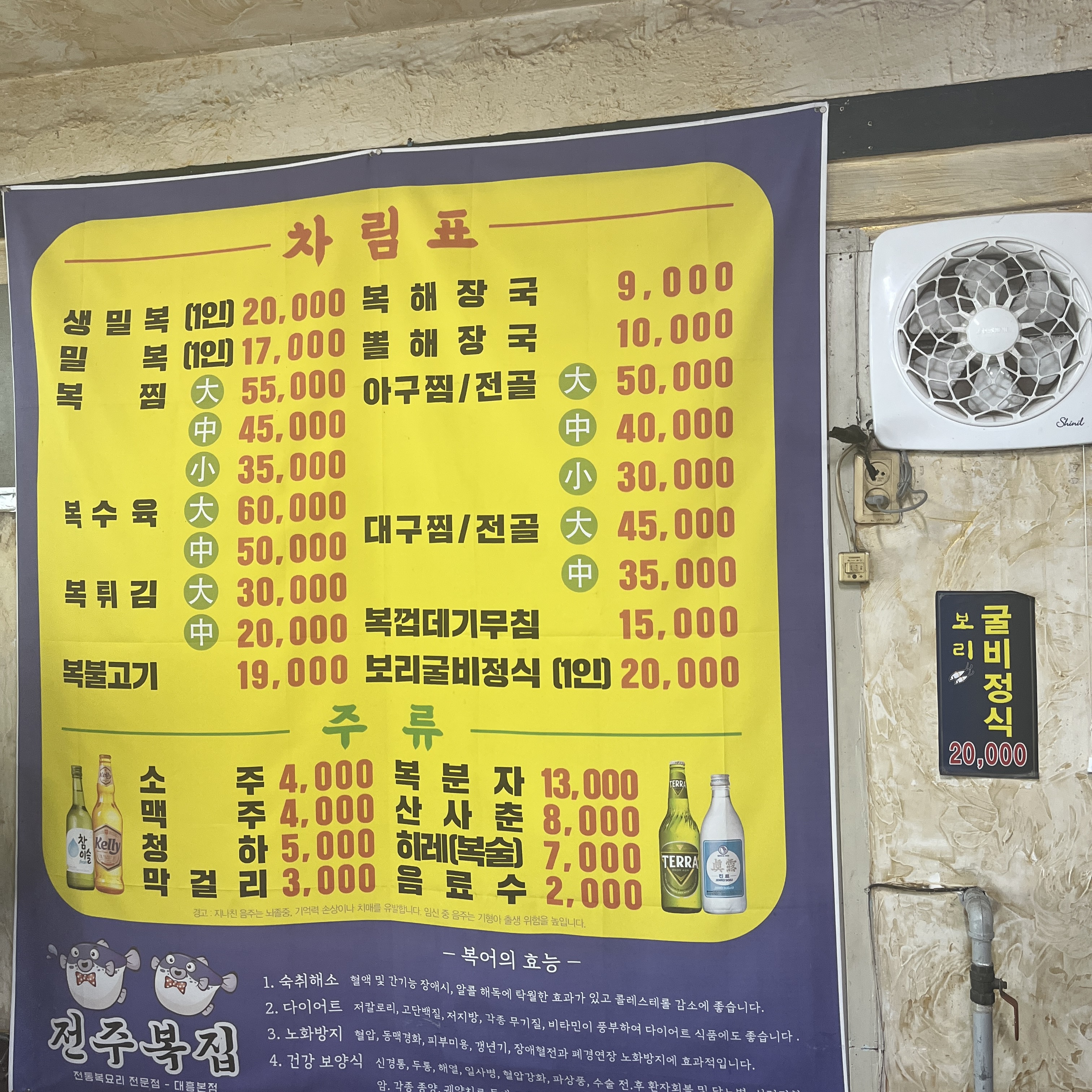 전주집 메뉴입니다.