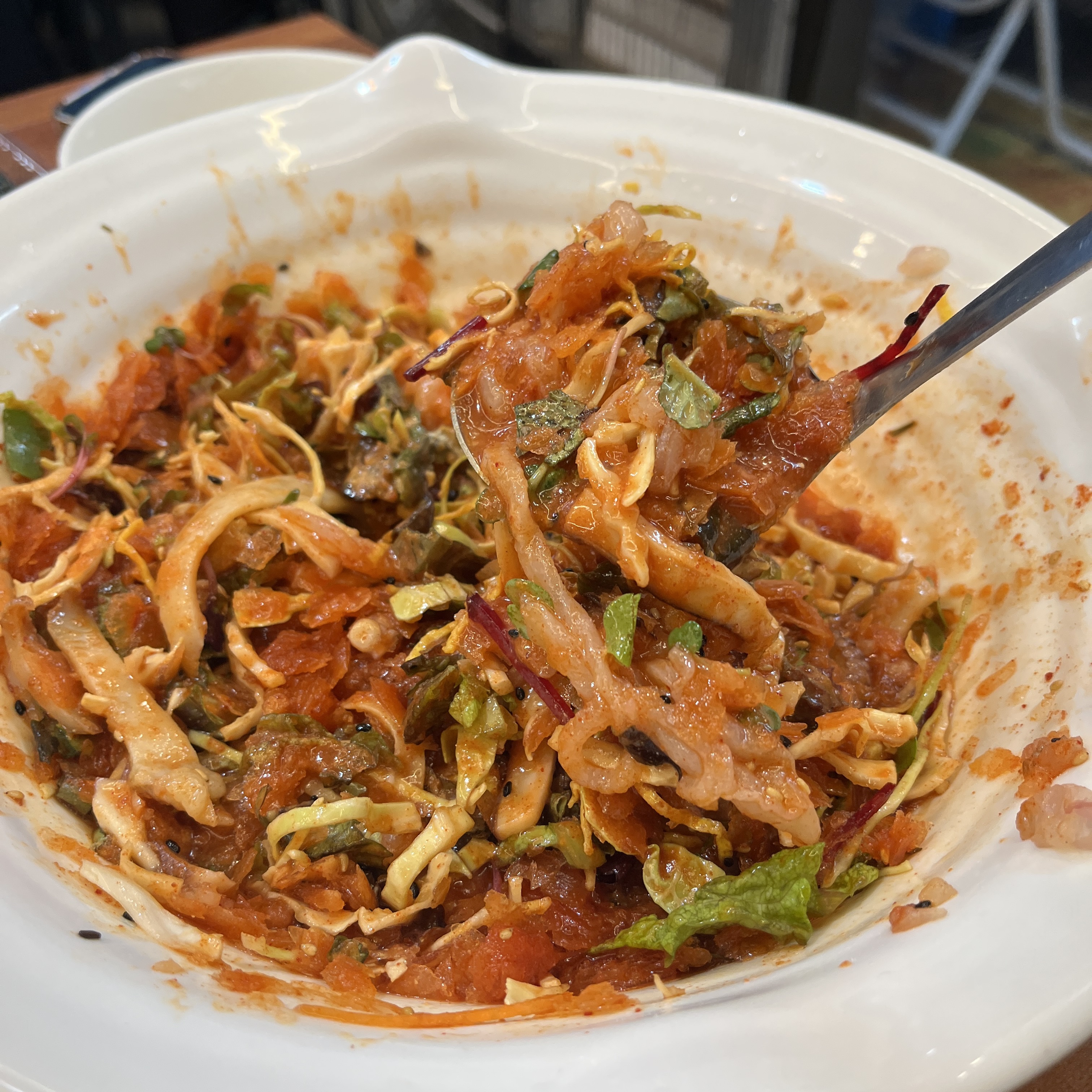 그 막 전복이나 해산물 잔뜩 올라간 물회처럼 해산물 골라먹는 맛은 아니지만,
