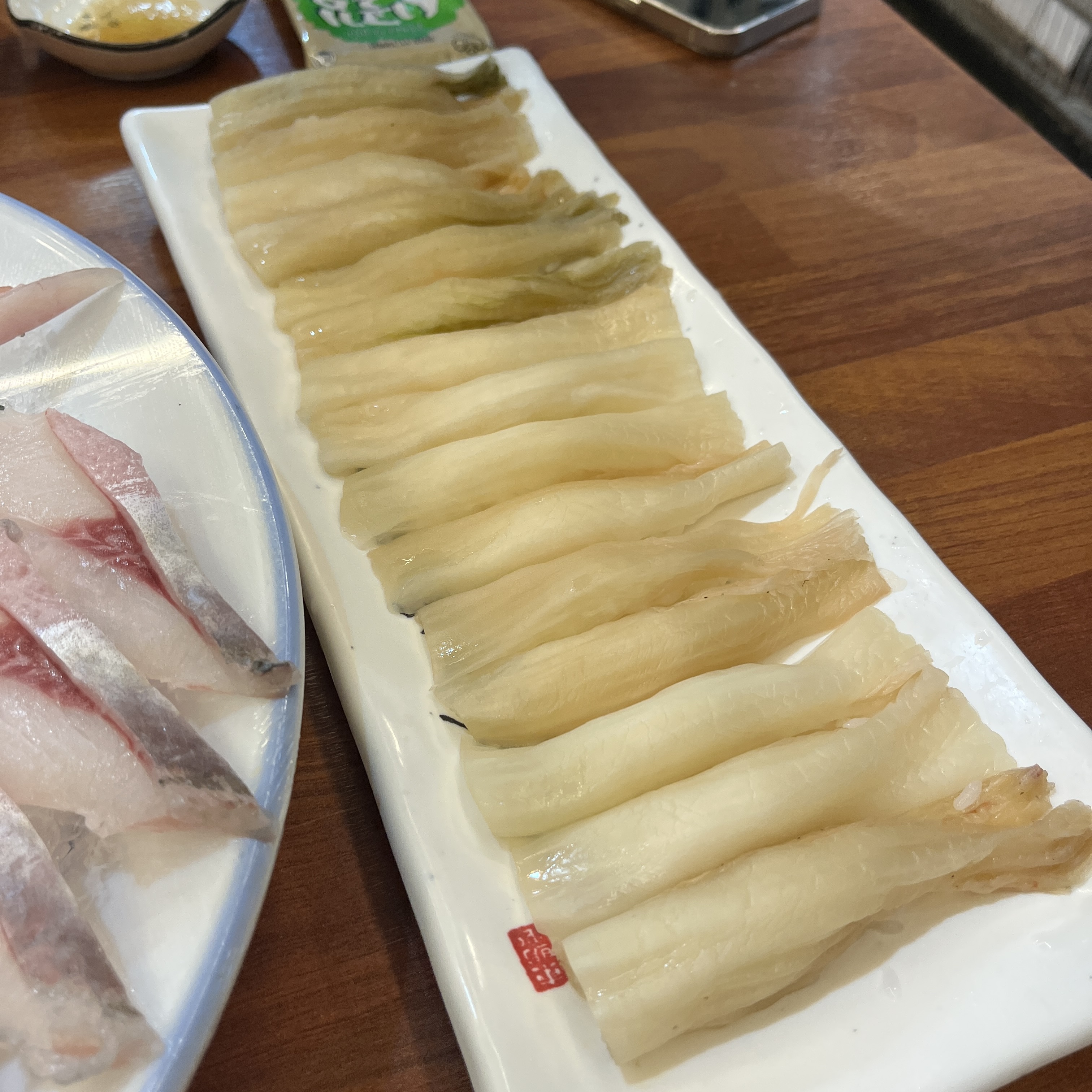 고등어회 나오기 전에 입가심(?)으로 참가자미, 한치 무침이 나왔습니다.