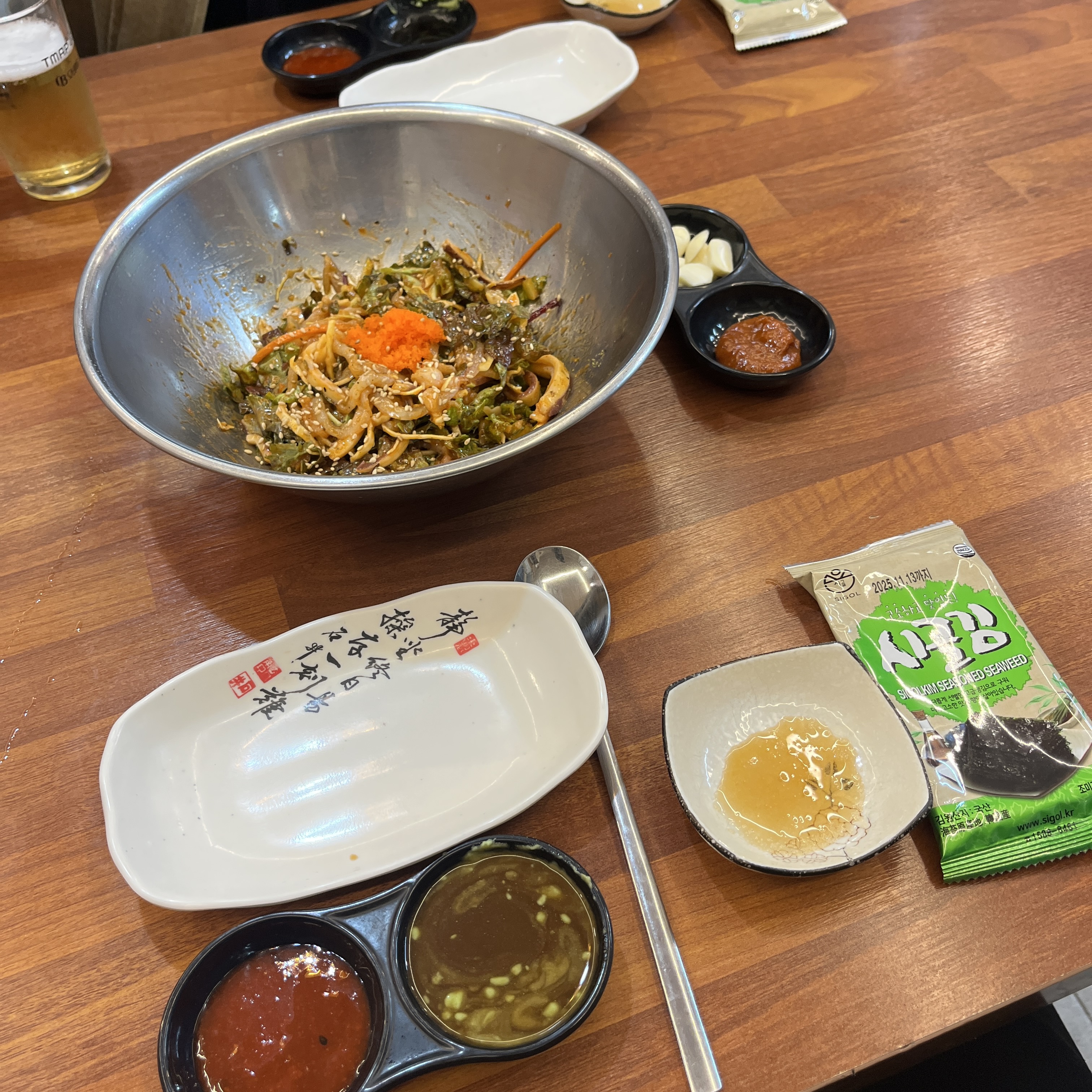 아까 그 참가자미, 한치 무침에 밥 비벼먹으니까. 역시.. 밥이 들어가니 완성되는 맛이었습니다.