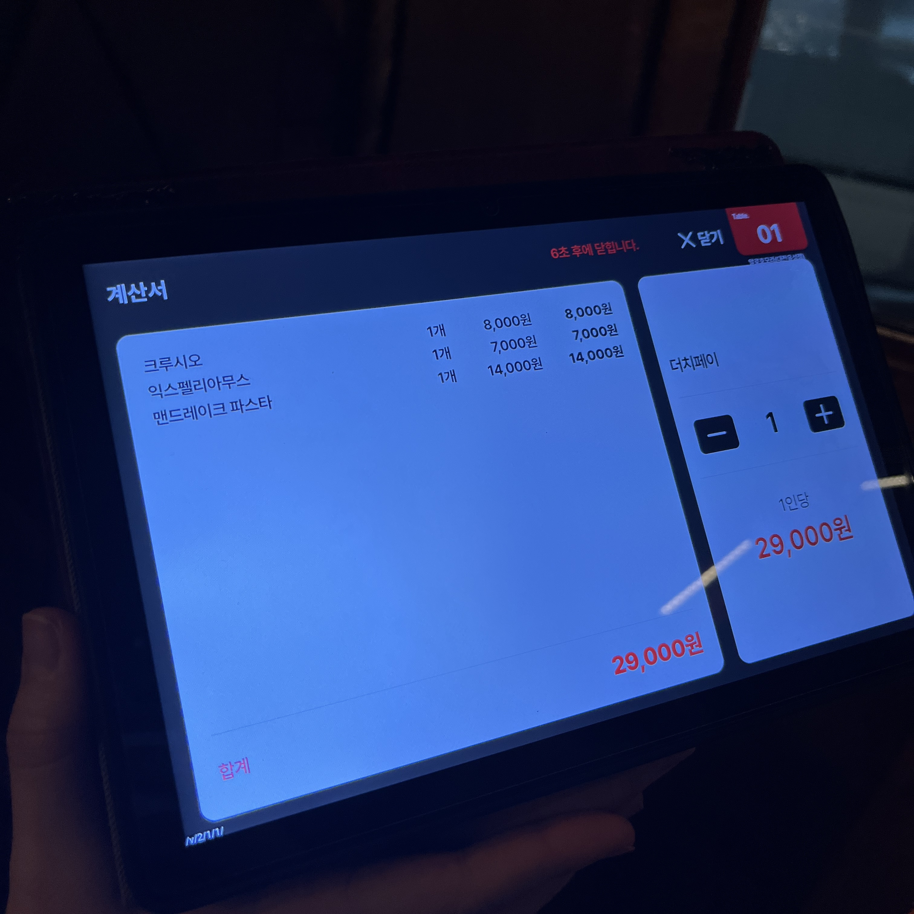 요게 메뉴를 시킬 수 있는 테블릿이 넣어저 있는 케이스에요.