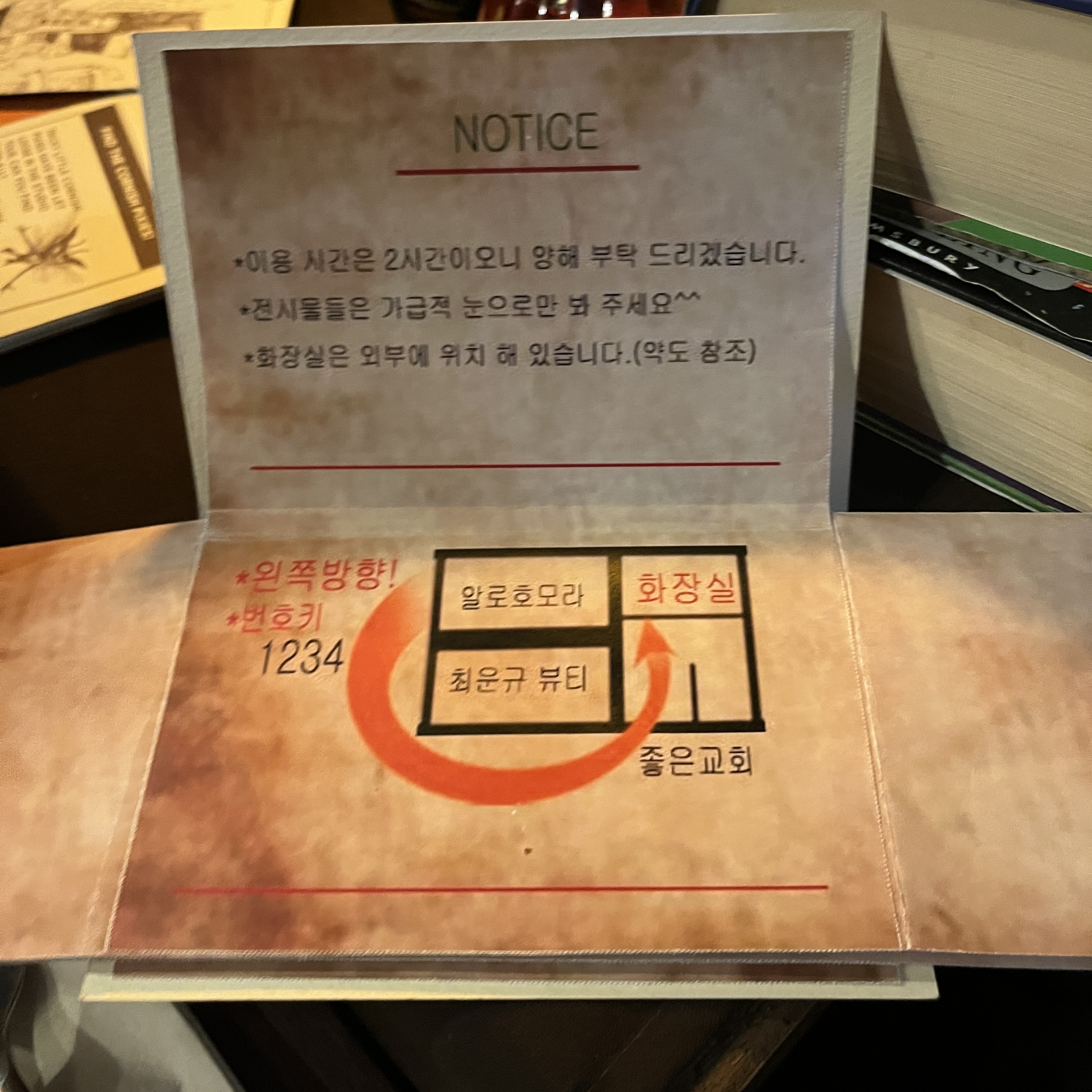 보통 바로 앞에 보이는 문을 열고 들어가는데, 거기가 아니라 오른쪽 벽같은 곳이 진짜 문이에요!!!