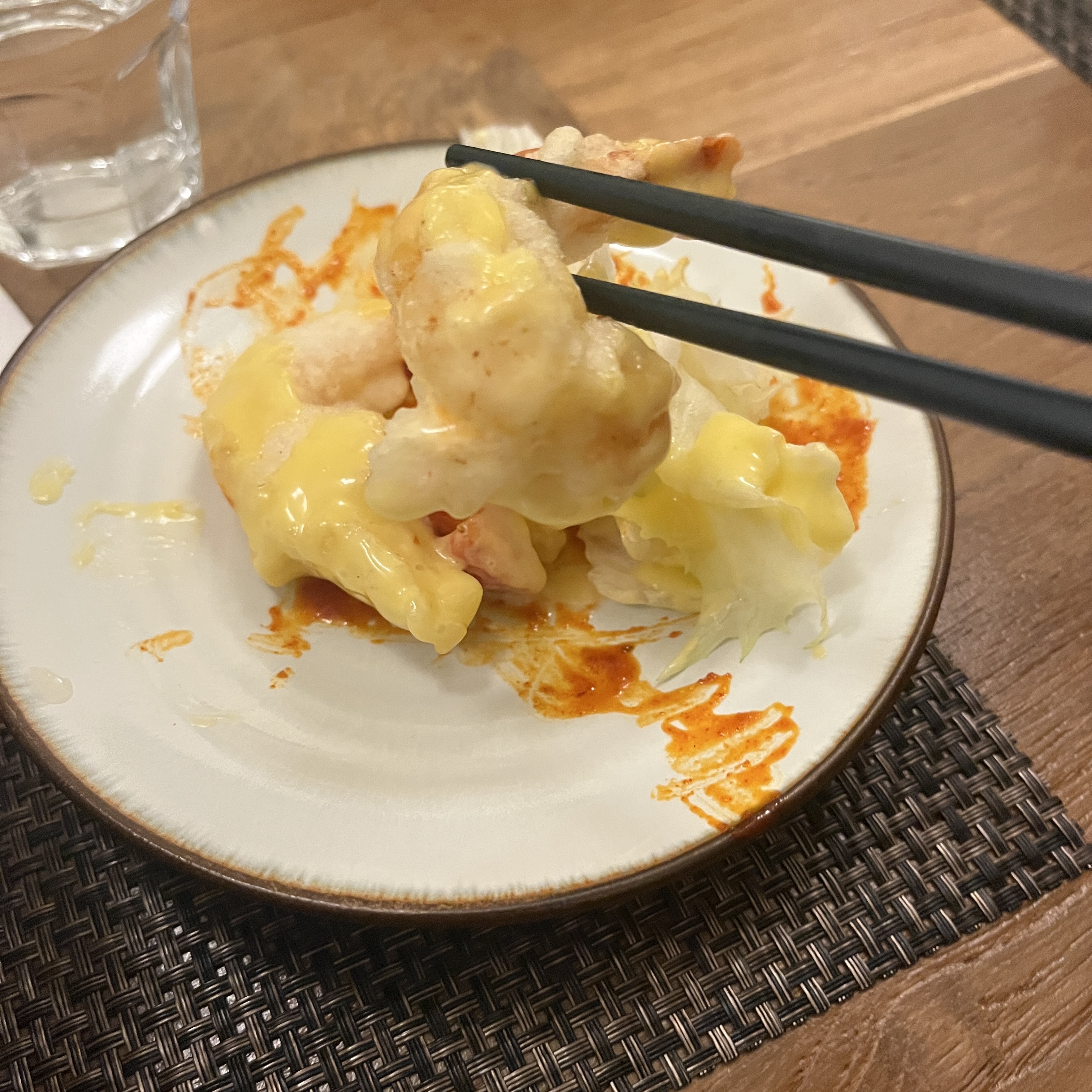 그 어느 중간에 있는 바삭포실한 튀김옷이 인상적이에여. 그리고 오동통한 새우살에서 느껴지는 새우맛도 좋고용.