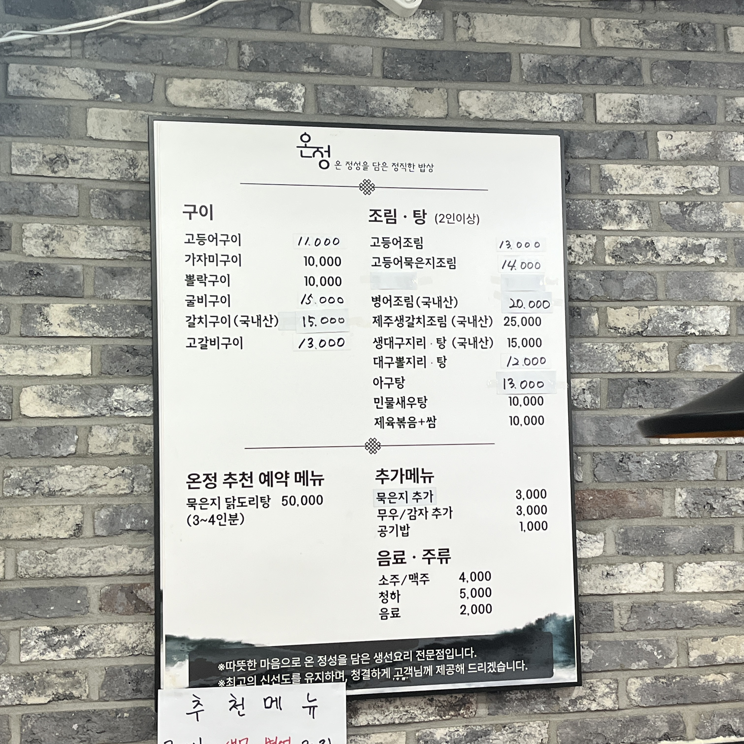 온정 메뉴입니다.