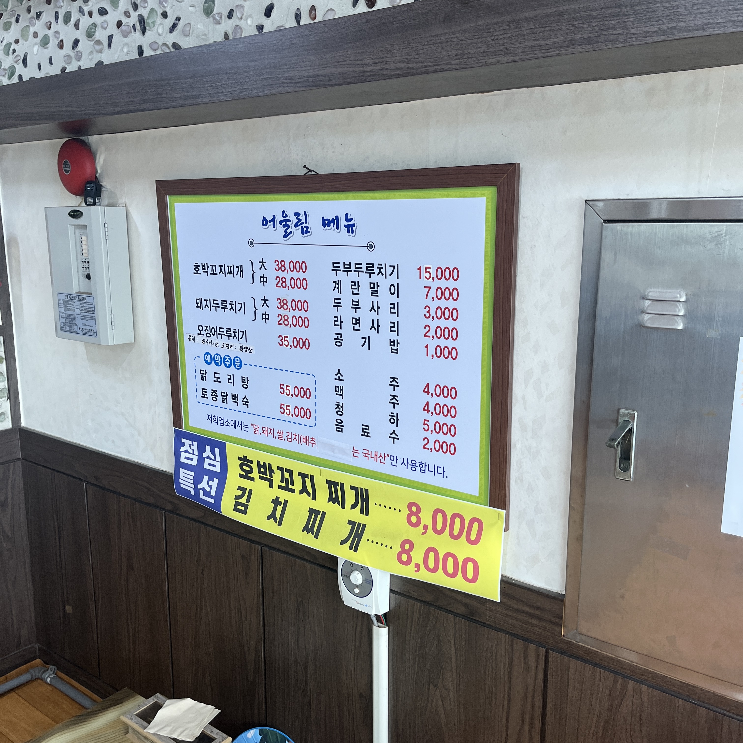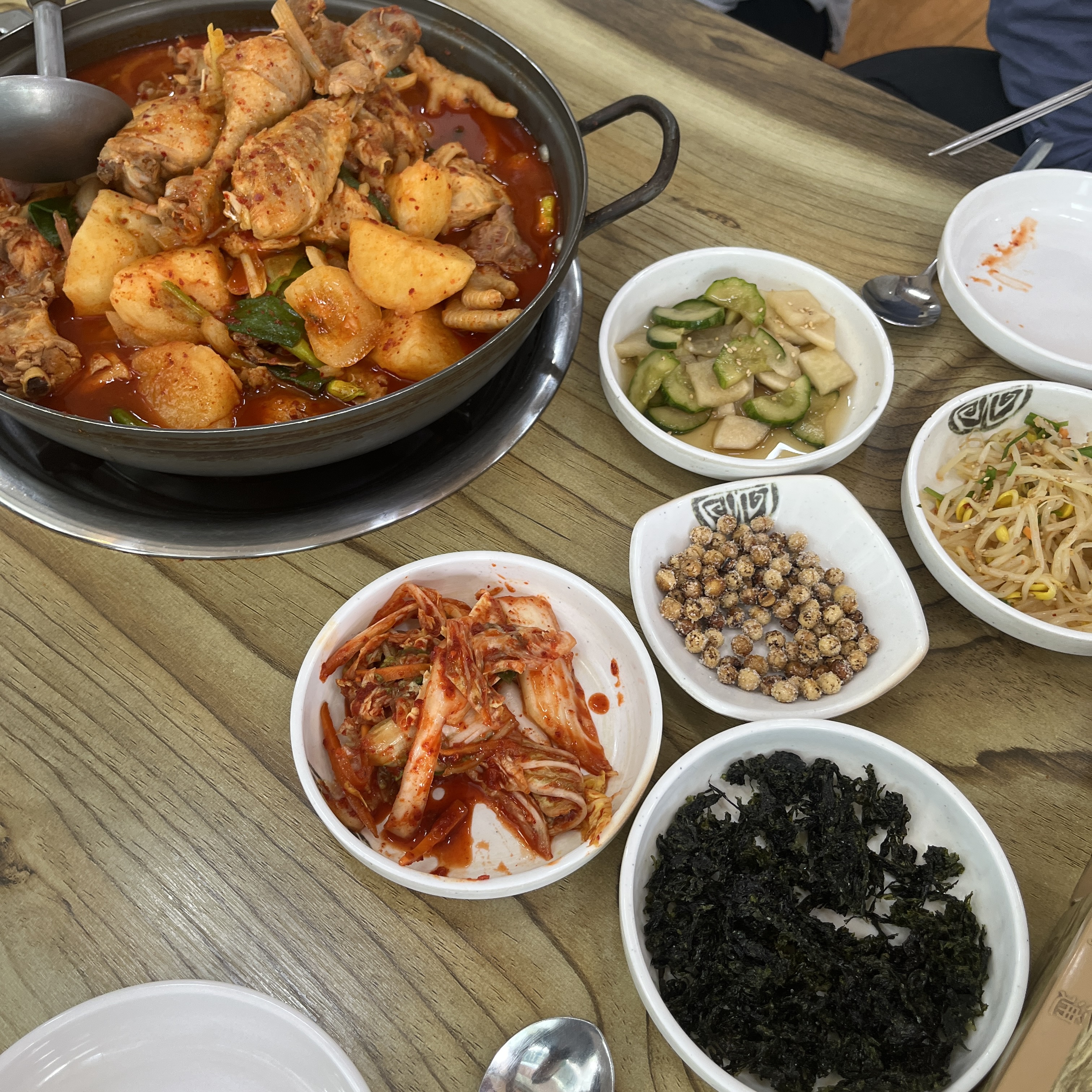 저흰 호박꼬지찌개, 닭도리탕 시켜서 테이블별로 나눠먹었습니다.
