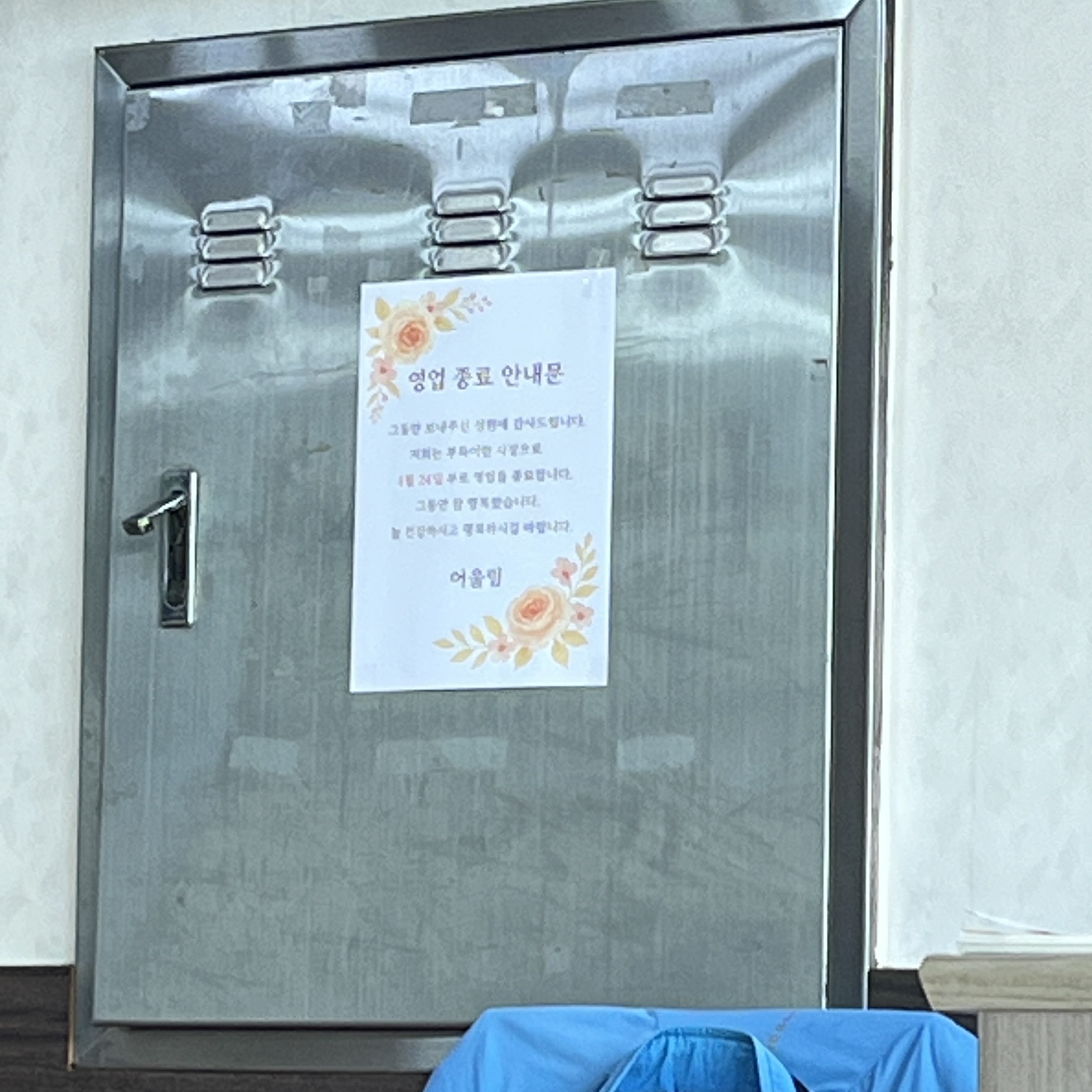 영업 종료 안내문..ㅠ
