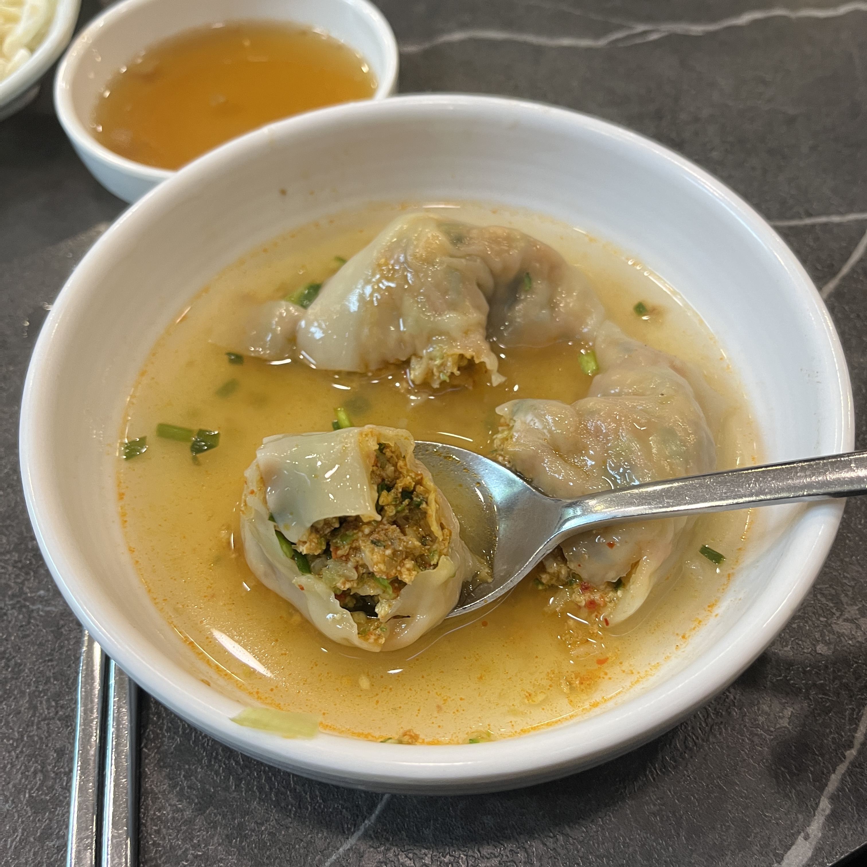 만두를 손으로 집어서 넣었는데, 촉감이 엄청 부드러웠습니다. 조금만 힘을 줘도 만두가 으스러질 것 같은 느낌이 든느 만두가 특징이었어요.