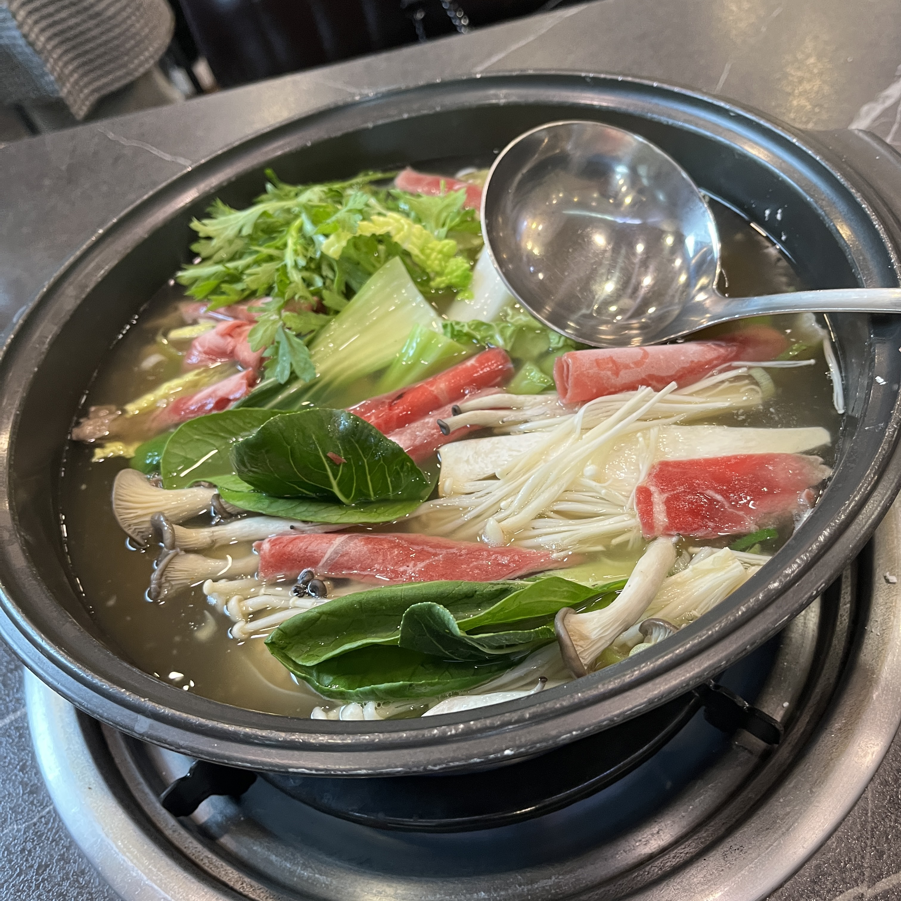 여기 육수가 진짜 마법입니다. 청경채랑 고기 집어 먹어보니, 이게 자극적이지 않으면서도 혀에 계속 고소함이 멤도는게, 아주 담백한 육수가 계쏙 입맛을 당기게 하는 마법이 있습니다.