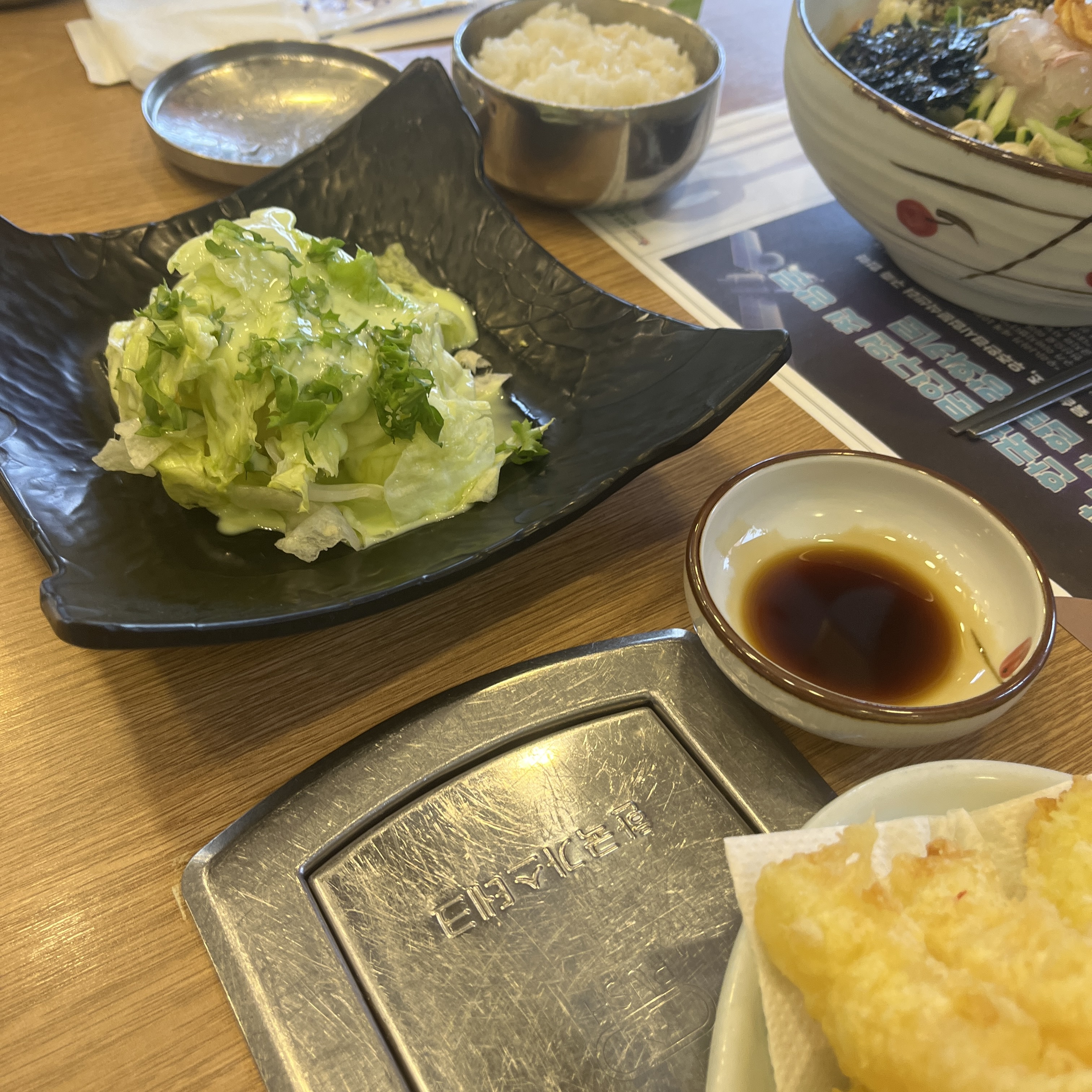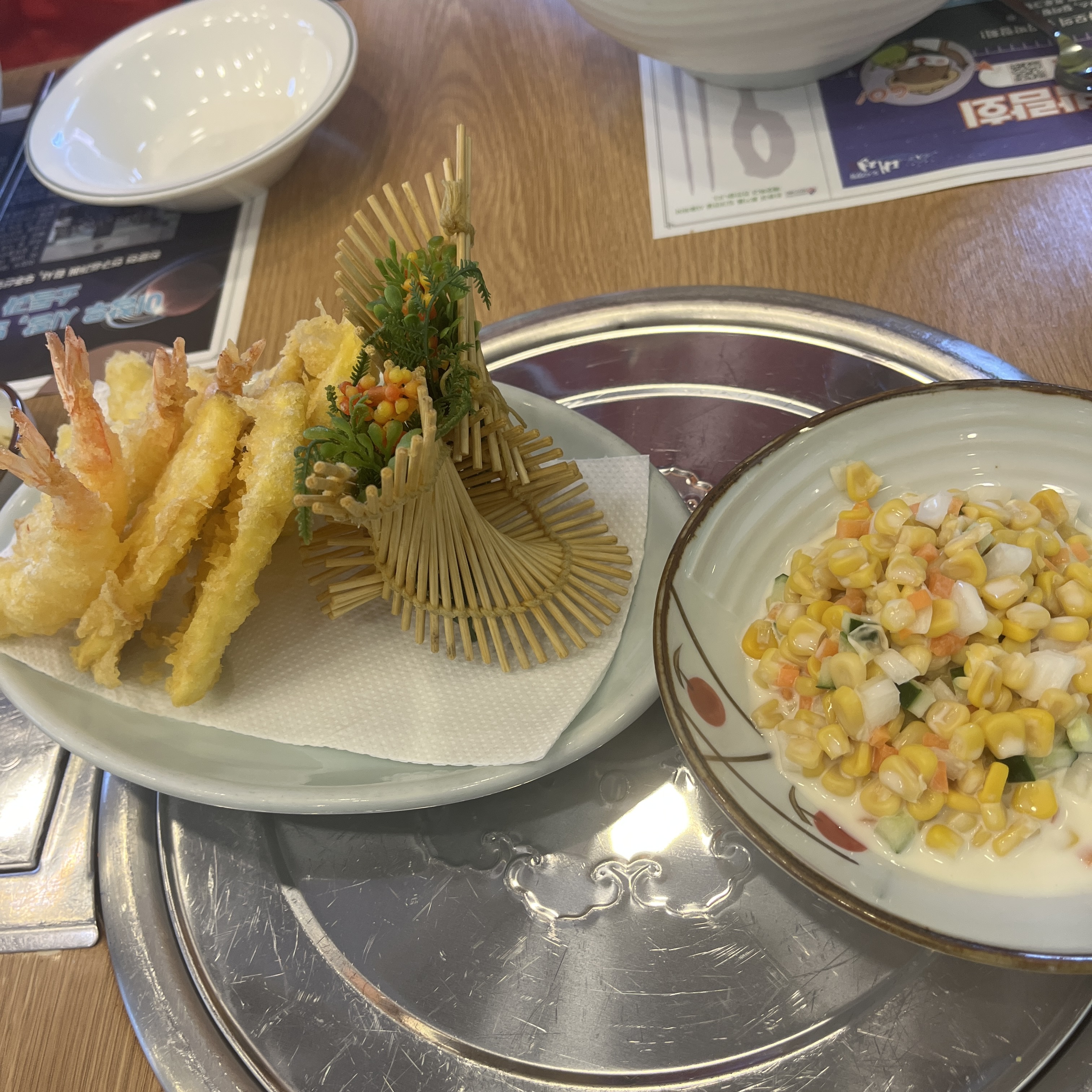 고구마튀김이랑 새우튀김이 제공되는데, 아주 깔끔하게 튀겨져있고, 고구마는 단단한 식감에 달큰함이 잘 느껴져서 좋았습니당.
