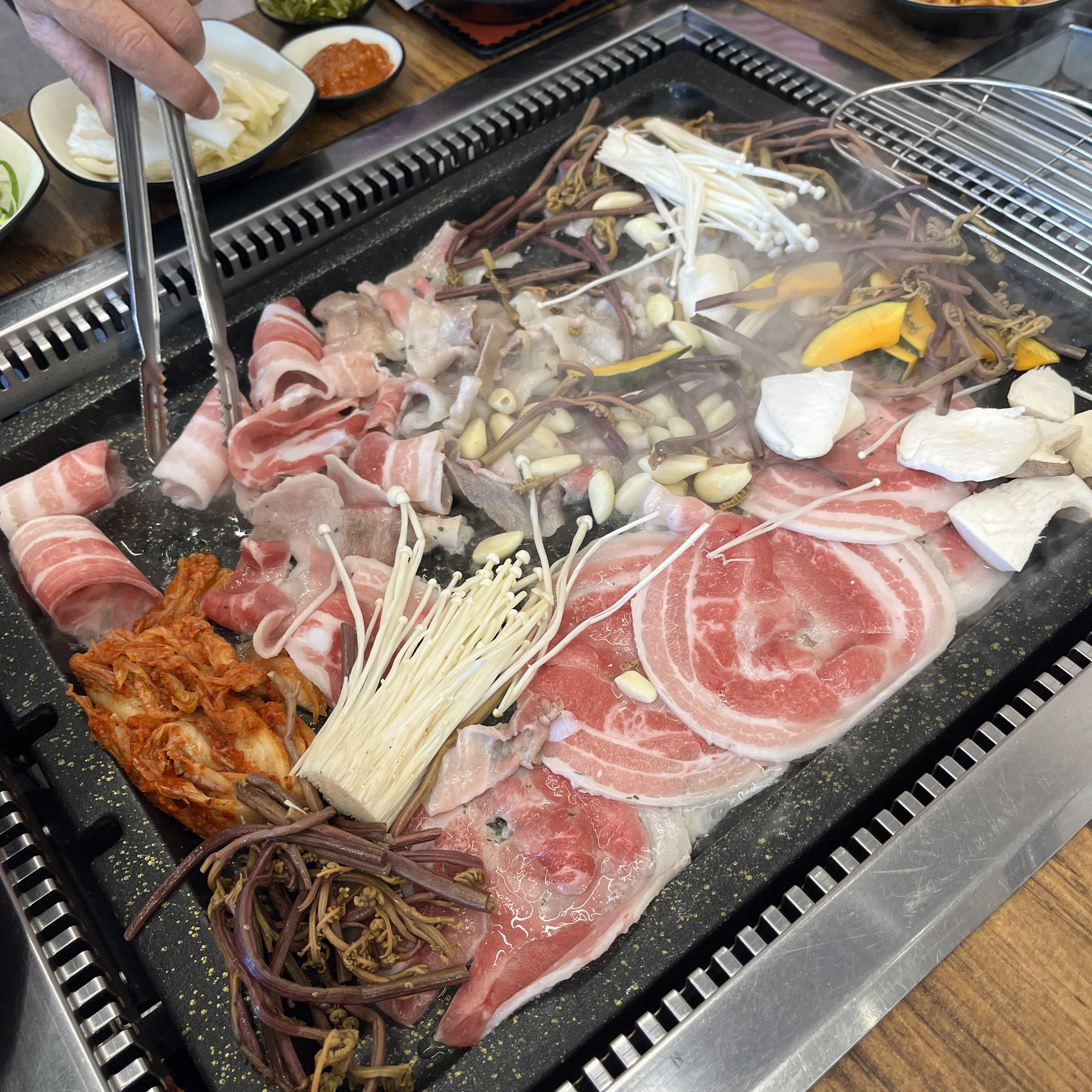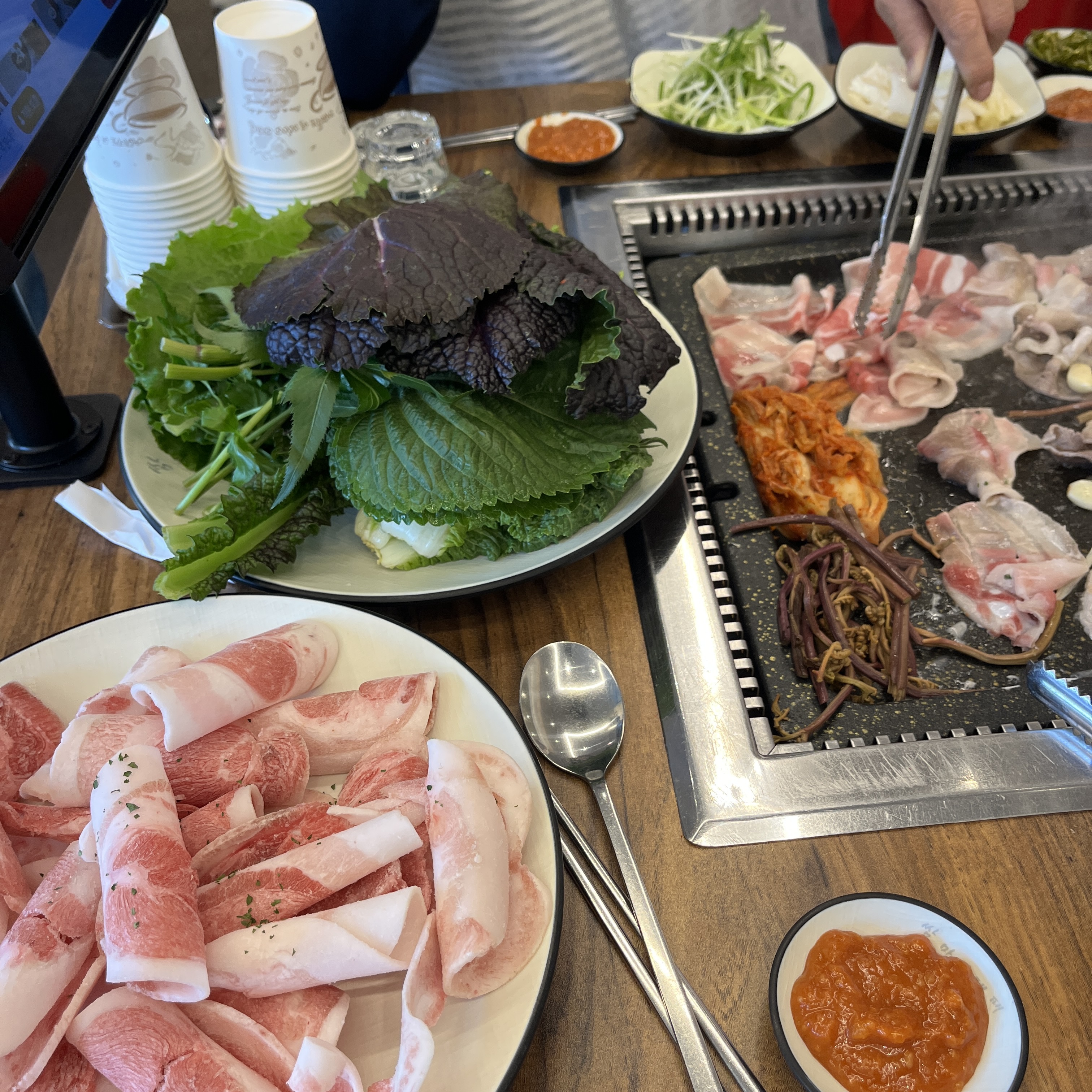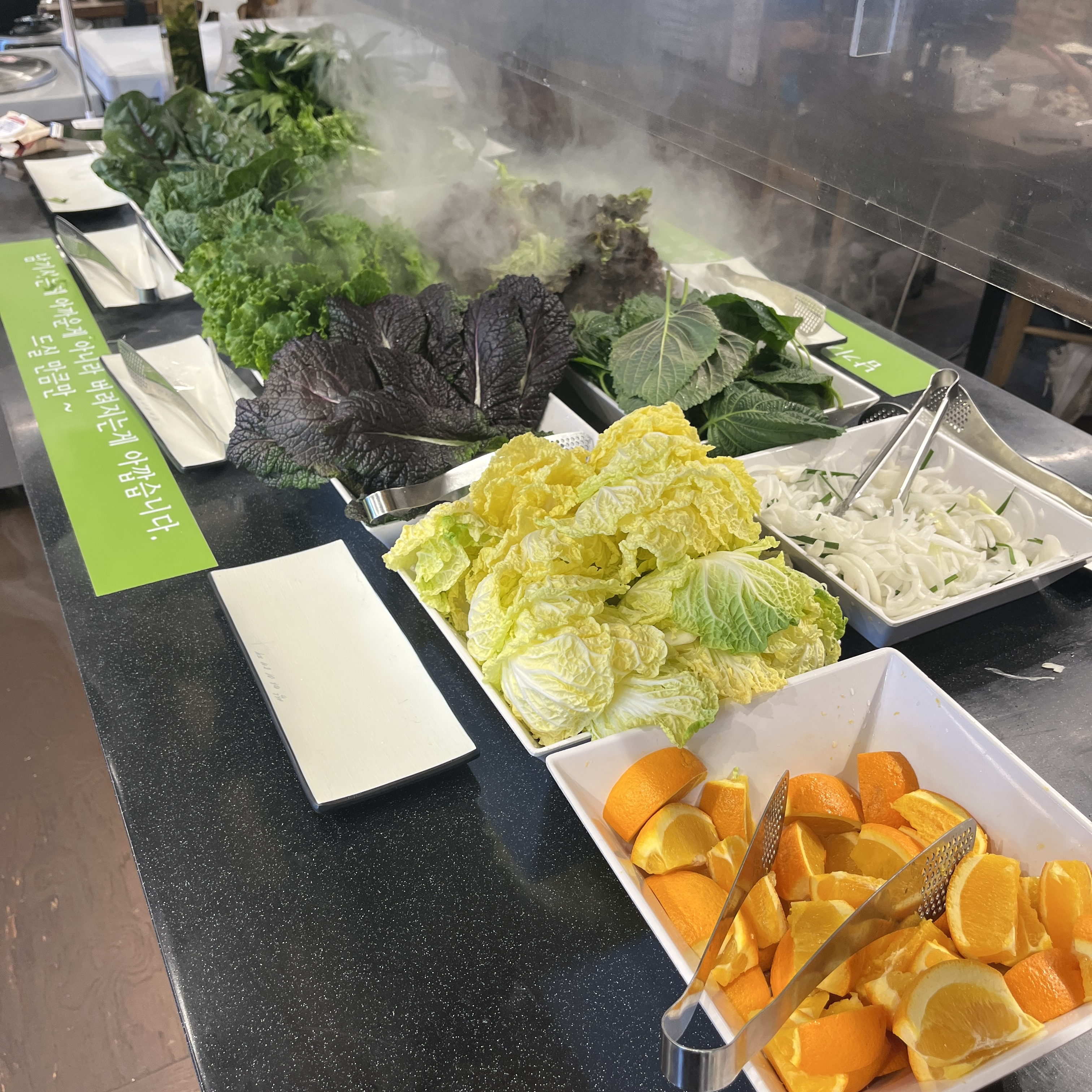 고기 질도 좋고, 야채도 무한리필로 마음껏 가져다 먹을 수 있고, 가격도 저렴해서!