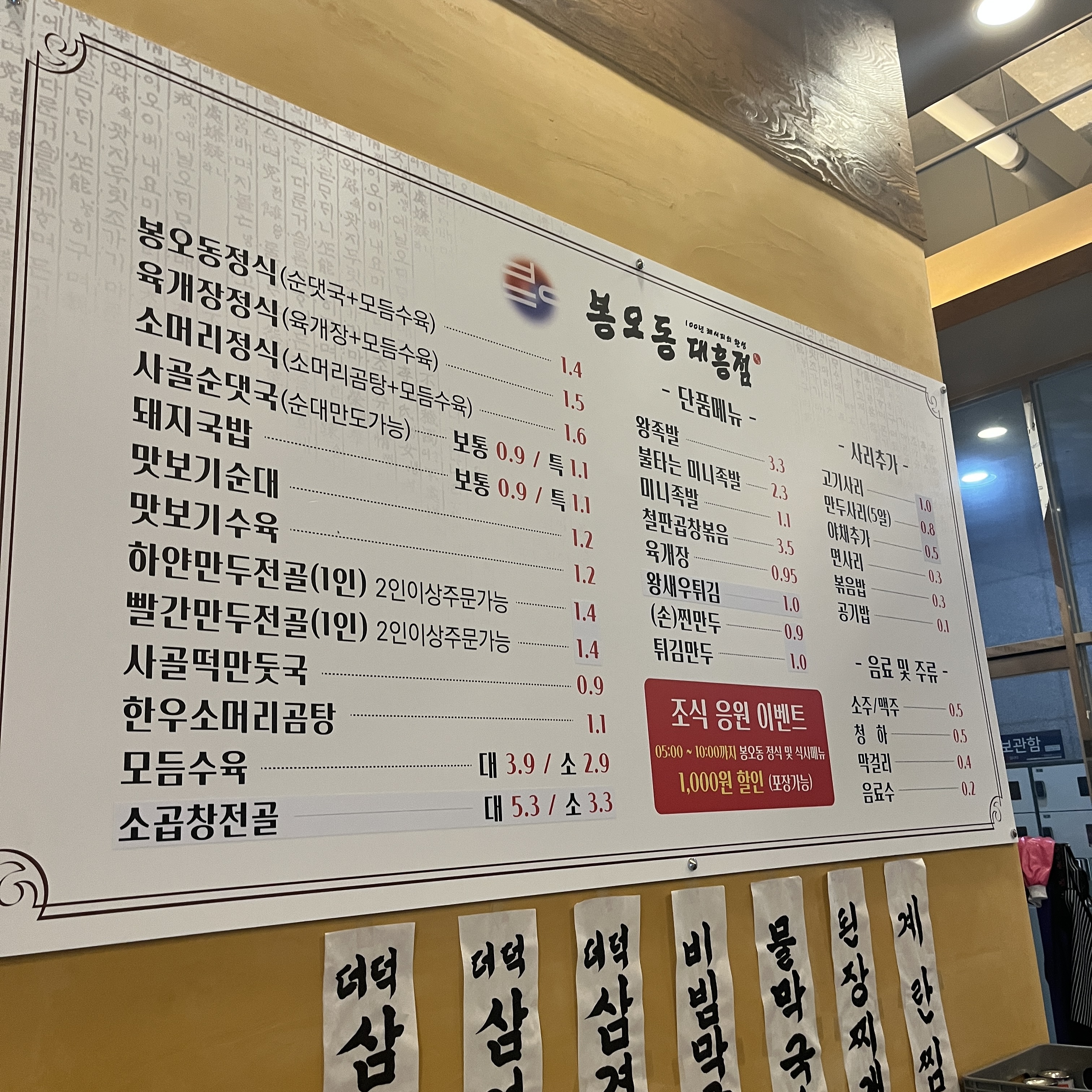 대전 중구 대흥동에 위치한 순대국밥 맛집 '봉오동순댓국'입니다.