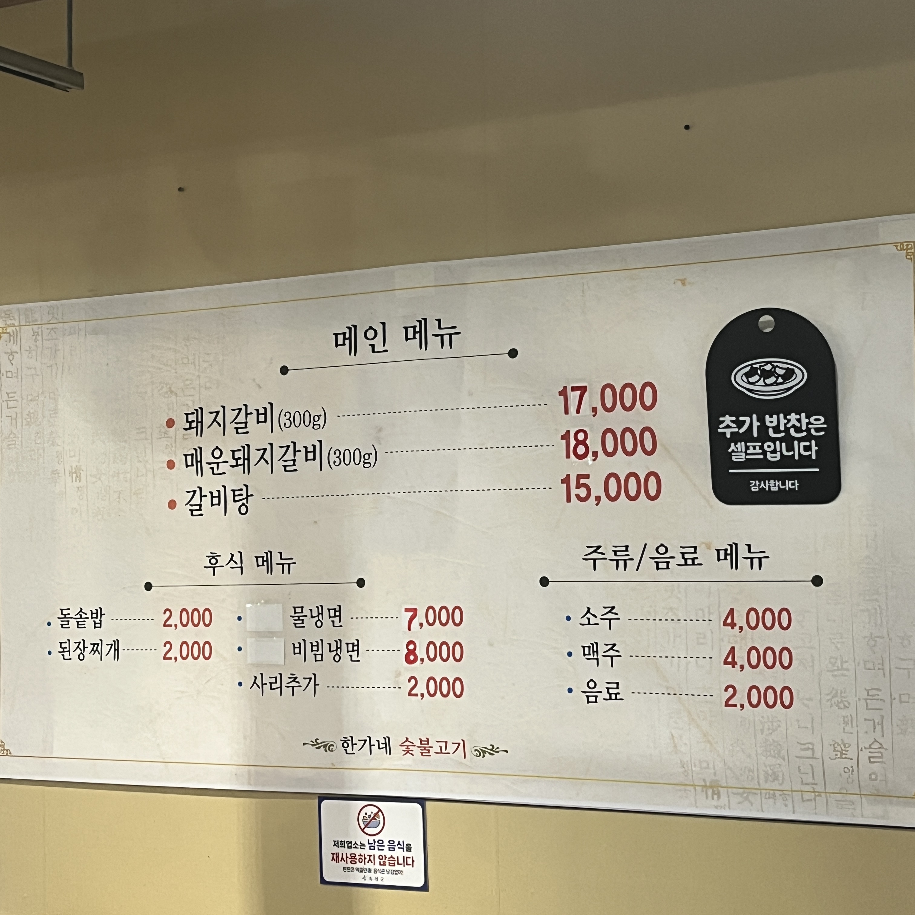 돼지갈비, 매운돼지갈비가 있습니다. 갈비탕도 있네요~