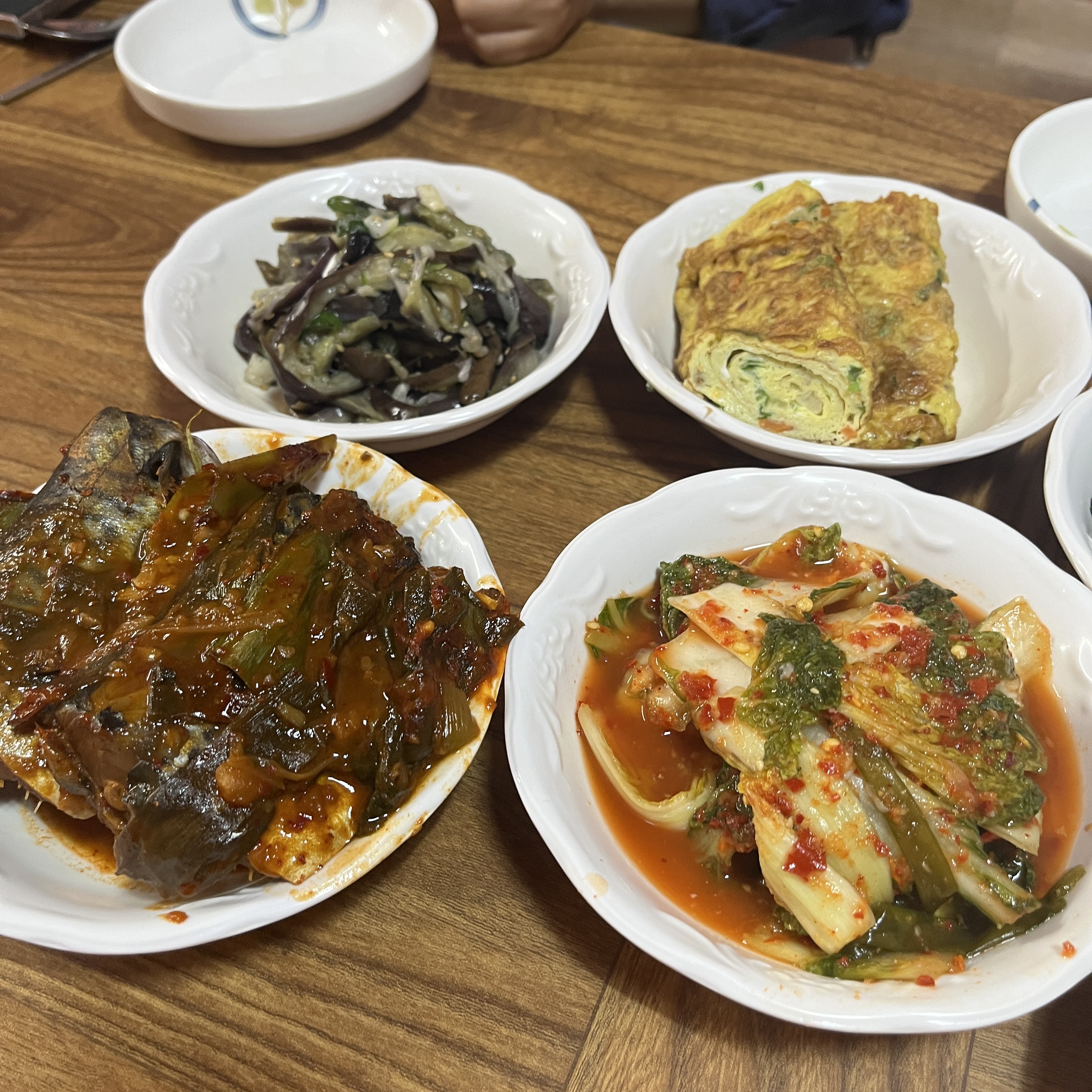 제가 간 날은 고등어조림, 가지무침, 계란말이, 물김치(?) 가 나왔어요.