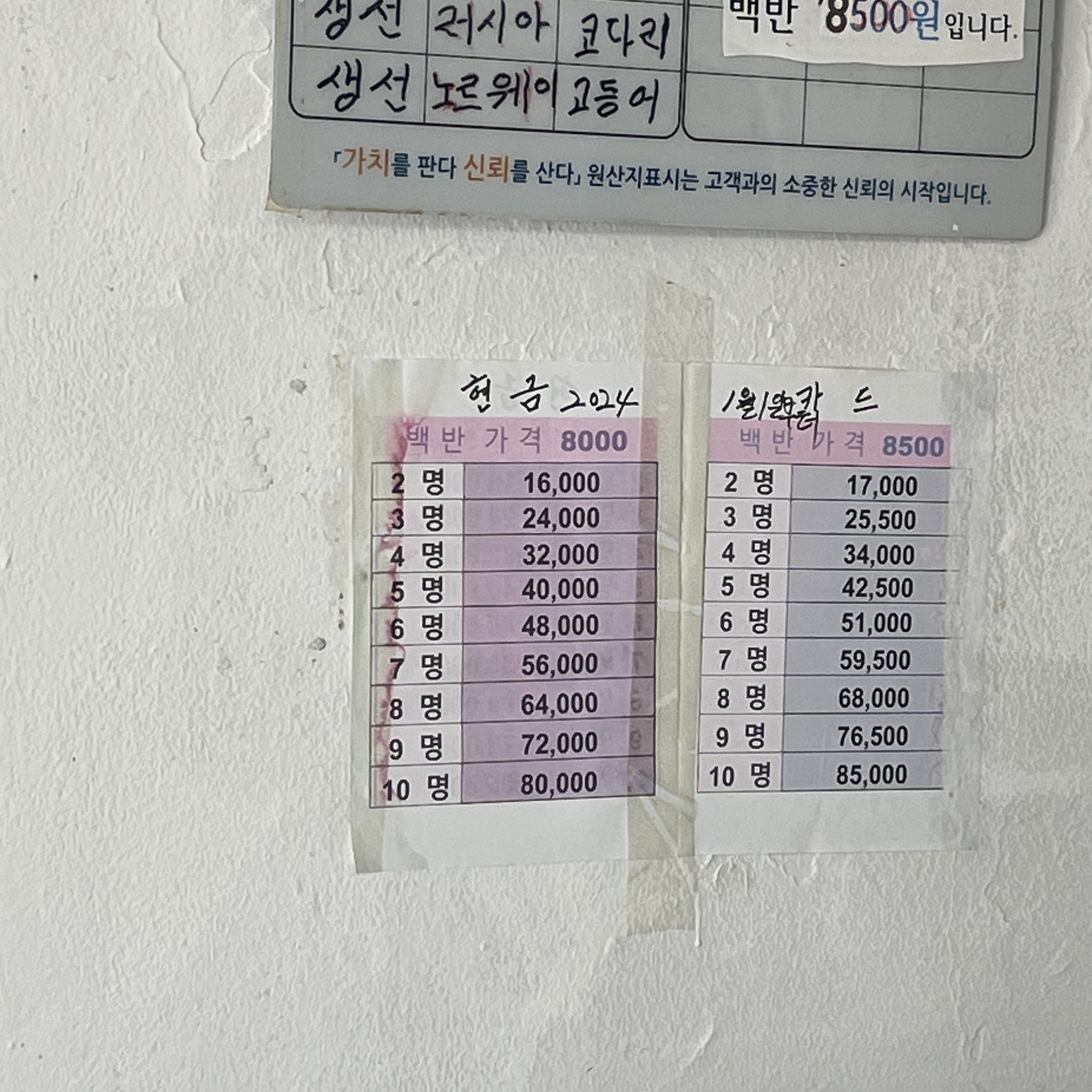 동남식당 메뉴입니다.