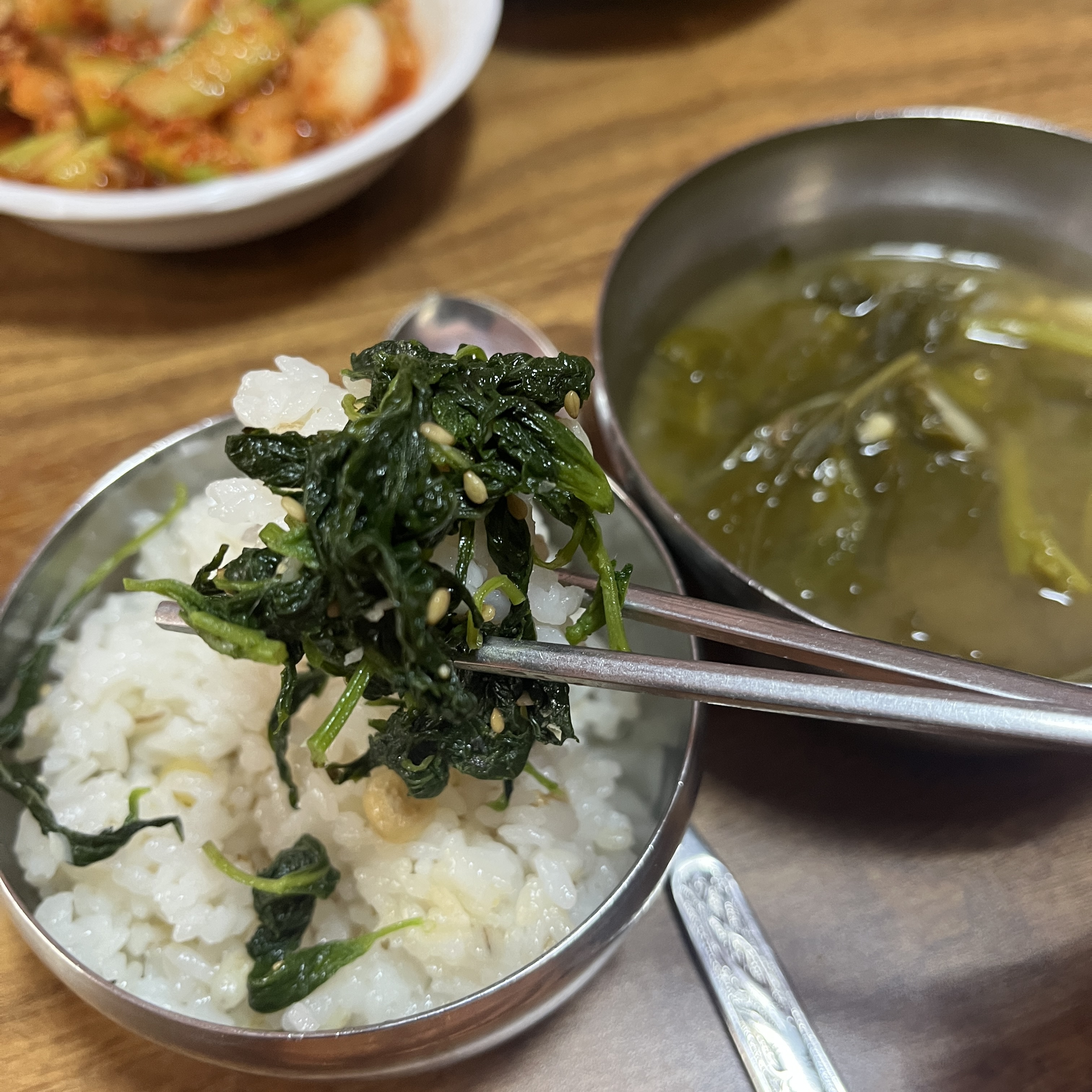 이날은 아욱된장국이 나왔어요. 아주 부드러운 구수함이 좋았구요,