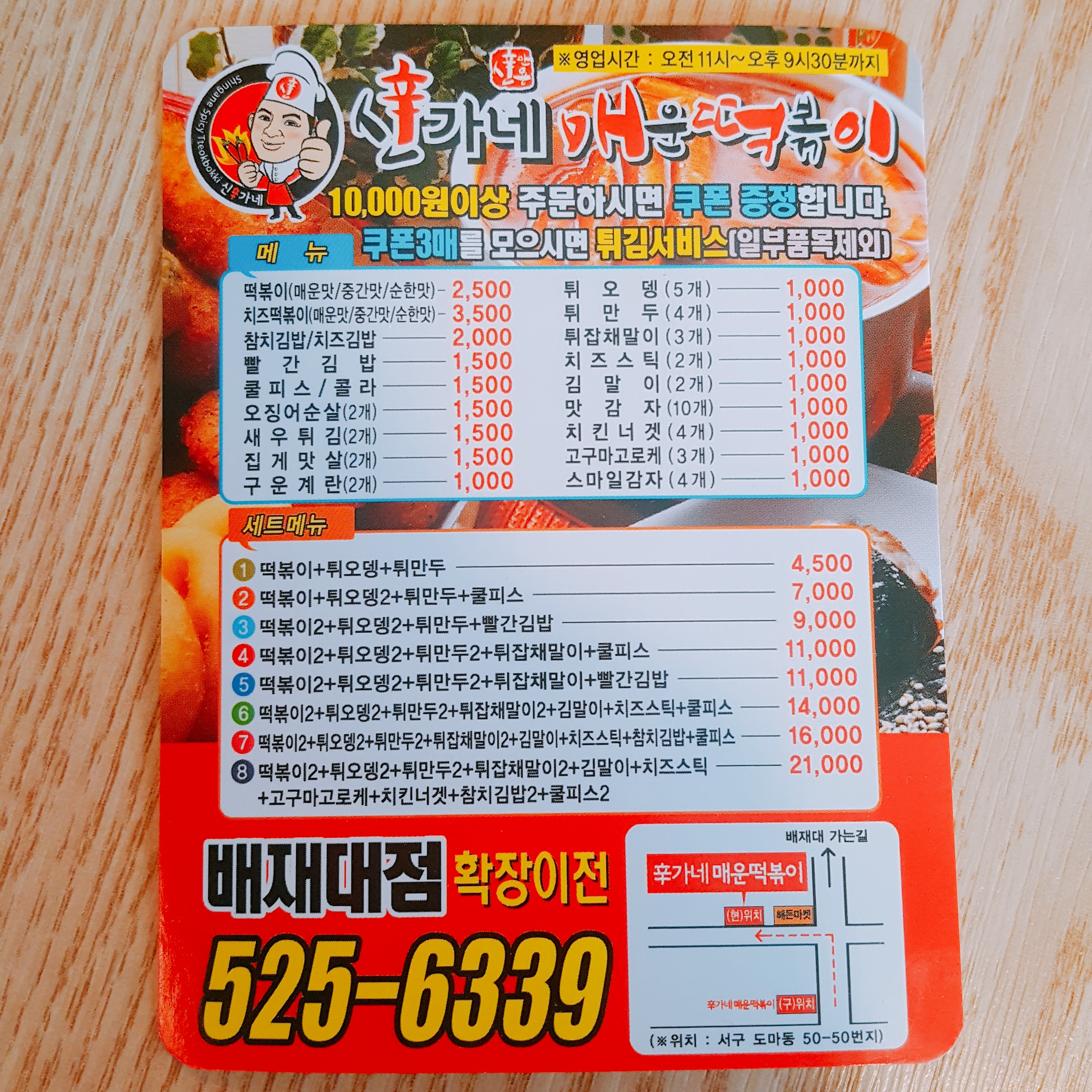 신가네매운떡볶이 배대재점 메뉴입니다. 이 때 확장이전한 후 초기에 갔어서 가게도 엄청 깨끗했고, 뭔가 새로 오픈한 기분이 드는 가게였습니다.