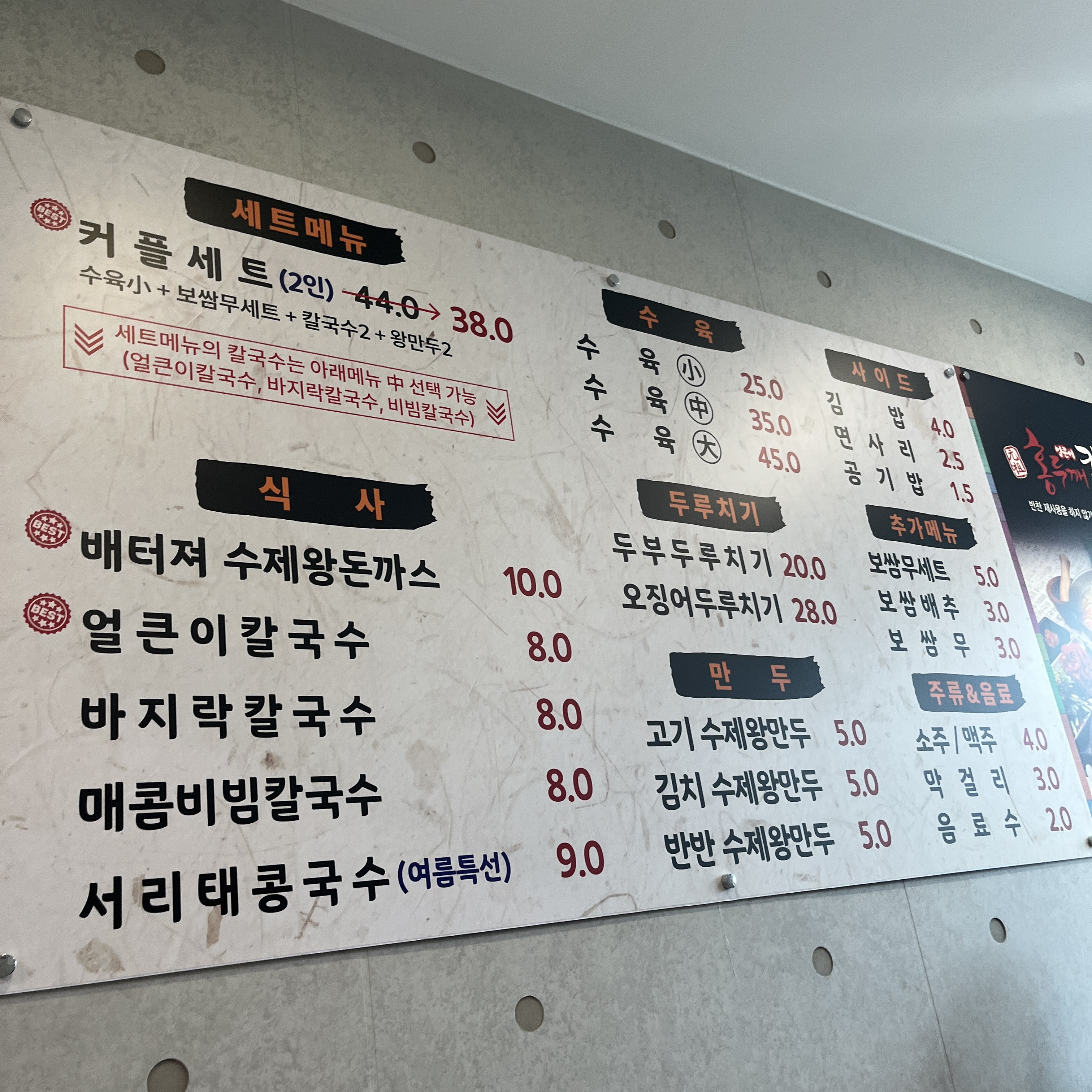 저는 여름특선 서리태콩국수 시켰구요, 수육, 두루치기 등도 다양하게 준비되어 있어요~