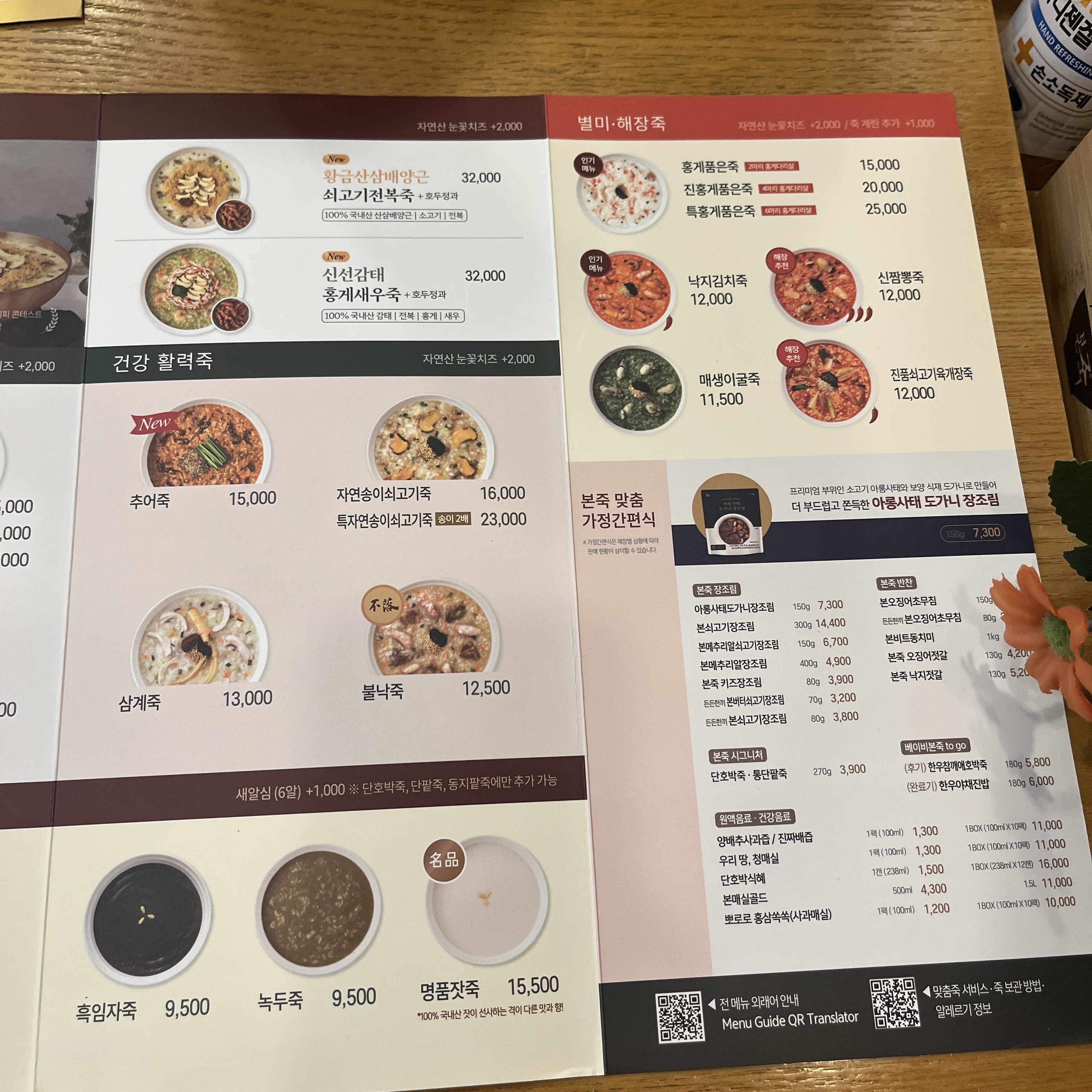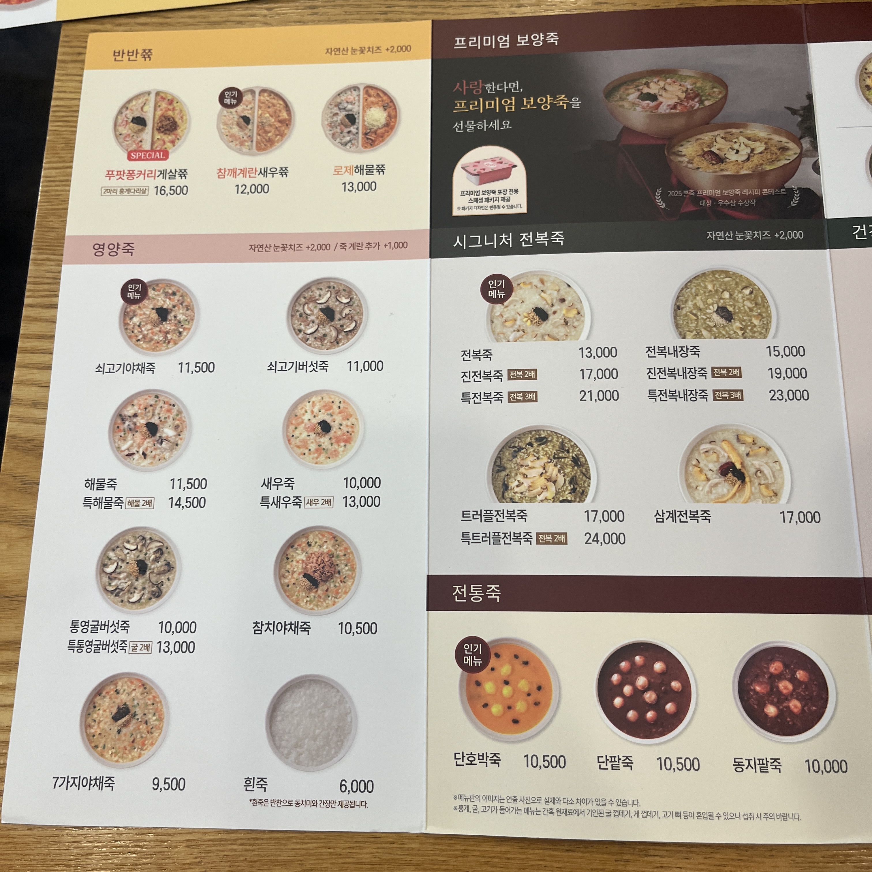 본죽 메뉴입니다. 갈수록 정말 다양한 죽이 생기는 것 같아요.ㅎㅎ