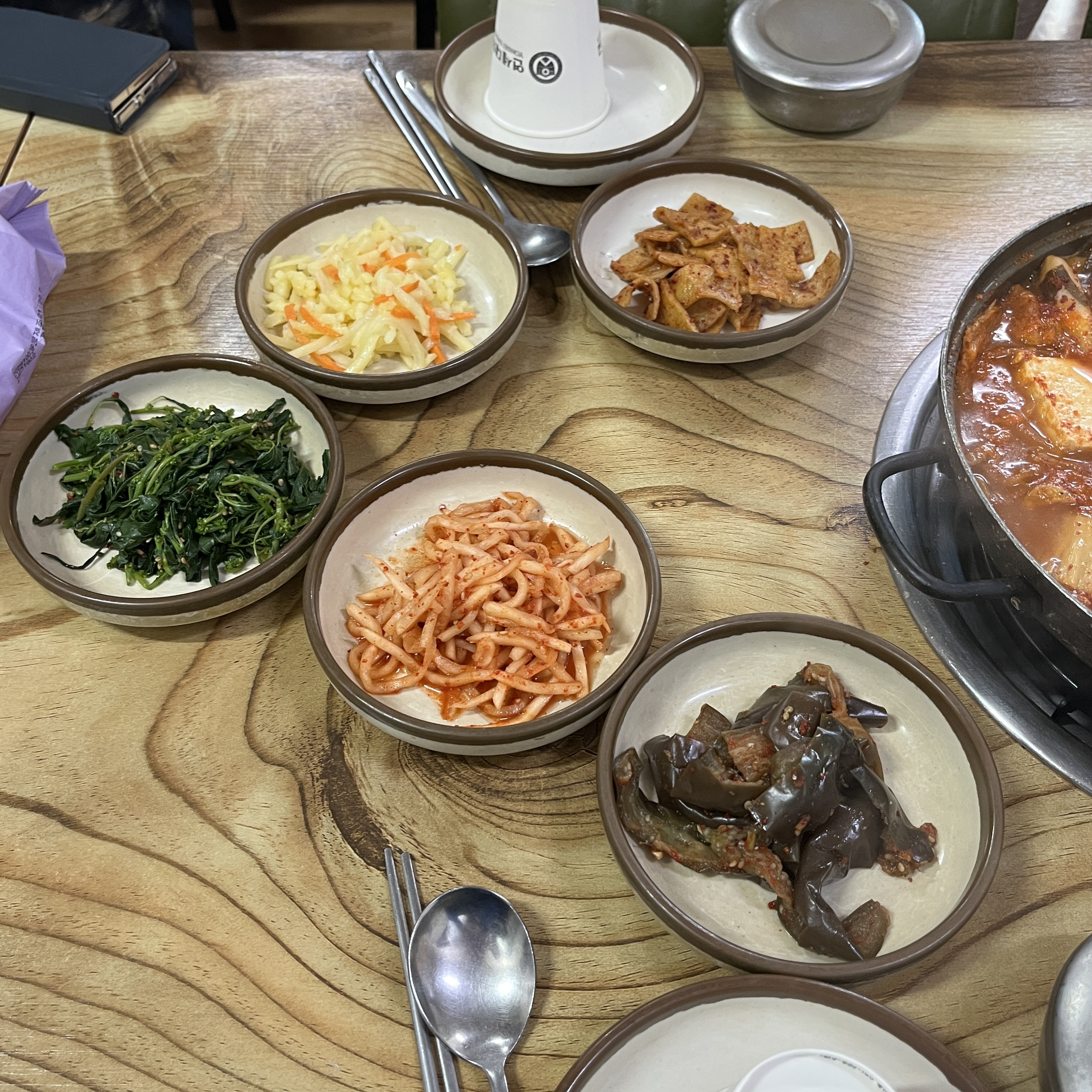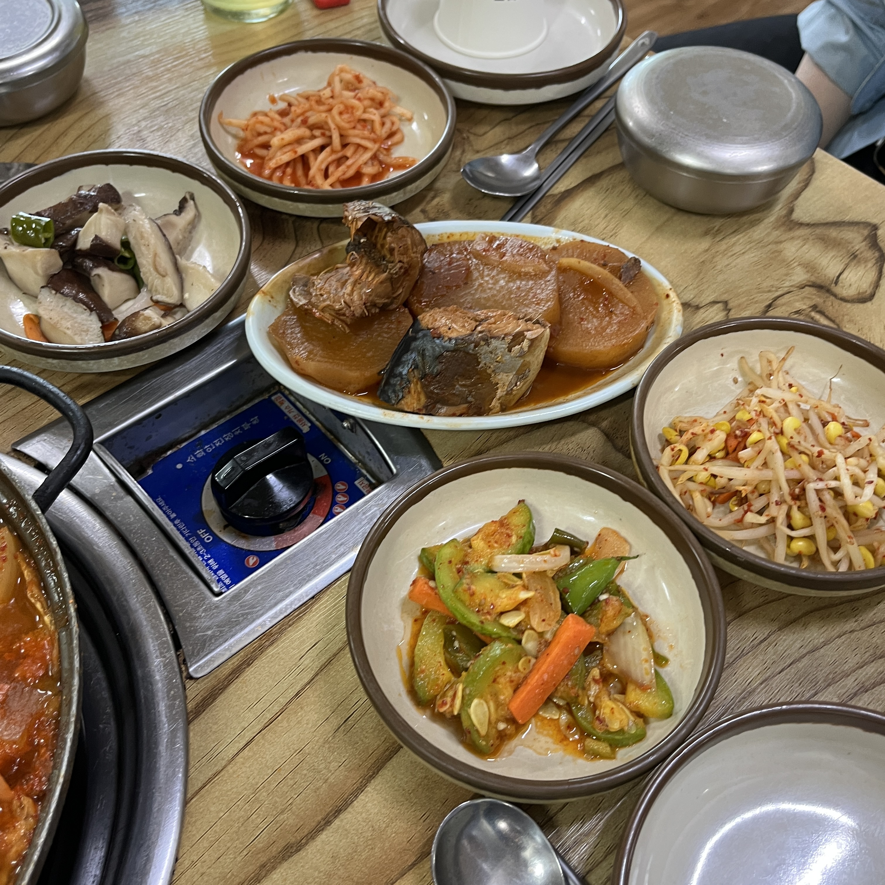 반찬들을 맛보니 김치찌개 맛이 너무나 기대되었어요!