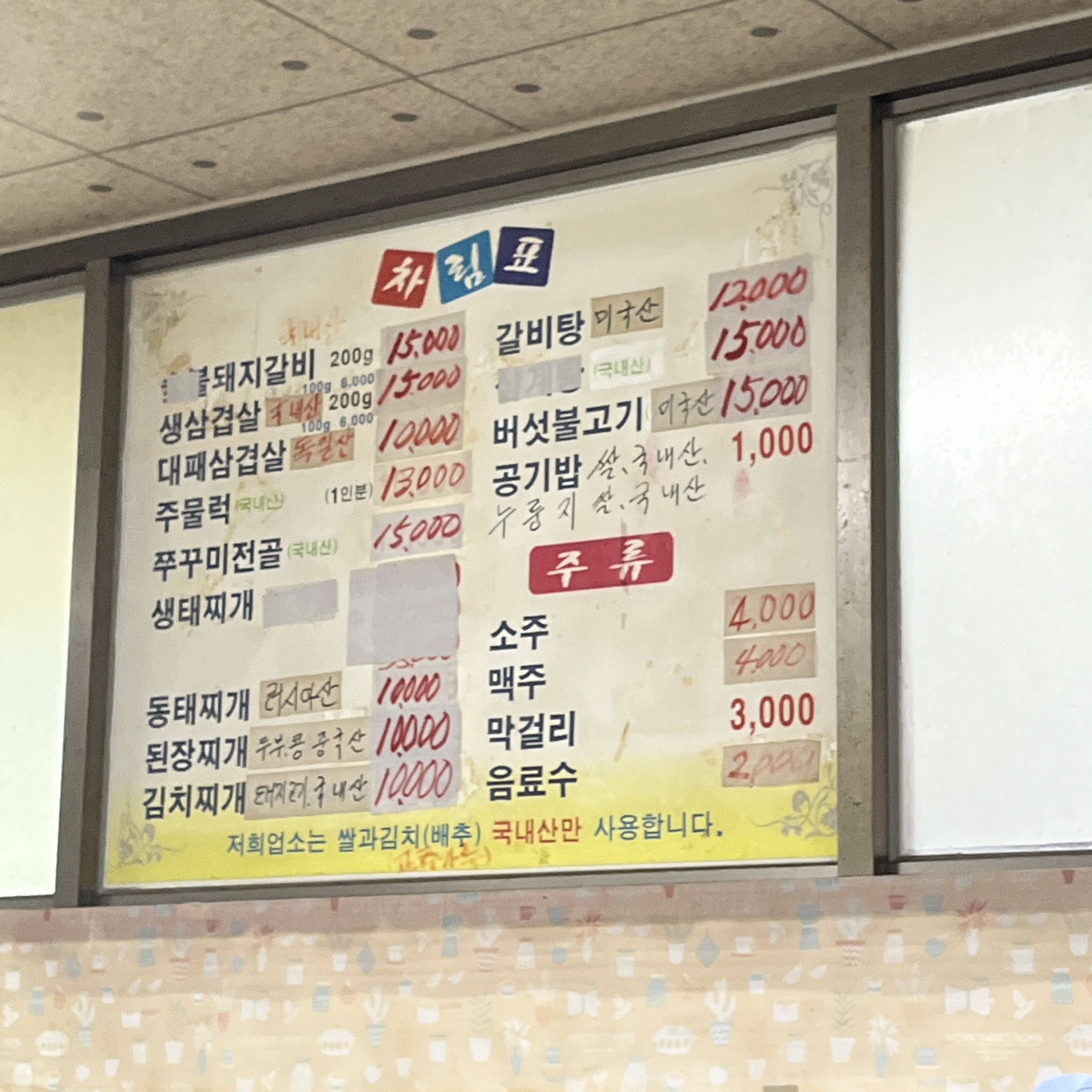 김치찌개 외에도 돼지갈비, 삼겹살 등등 다양한 메뉴가 준비되어 있어요~
