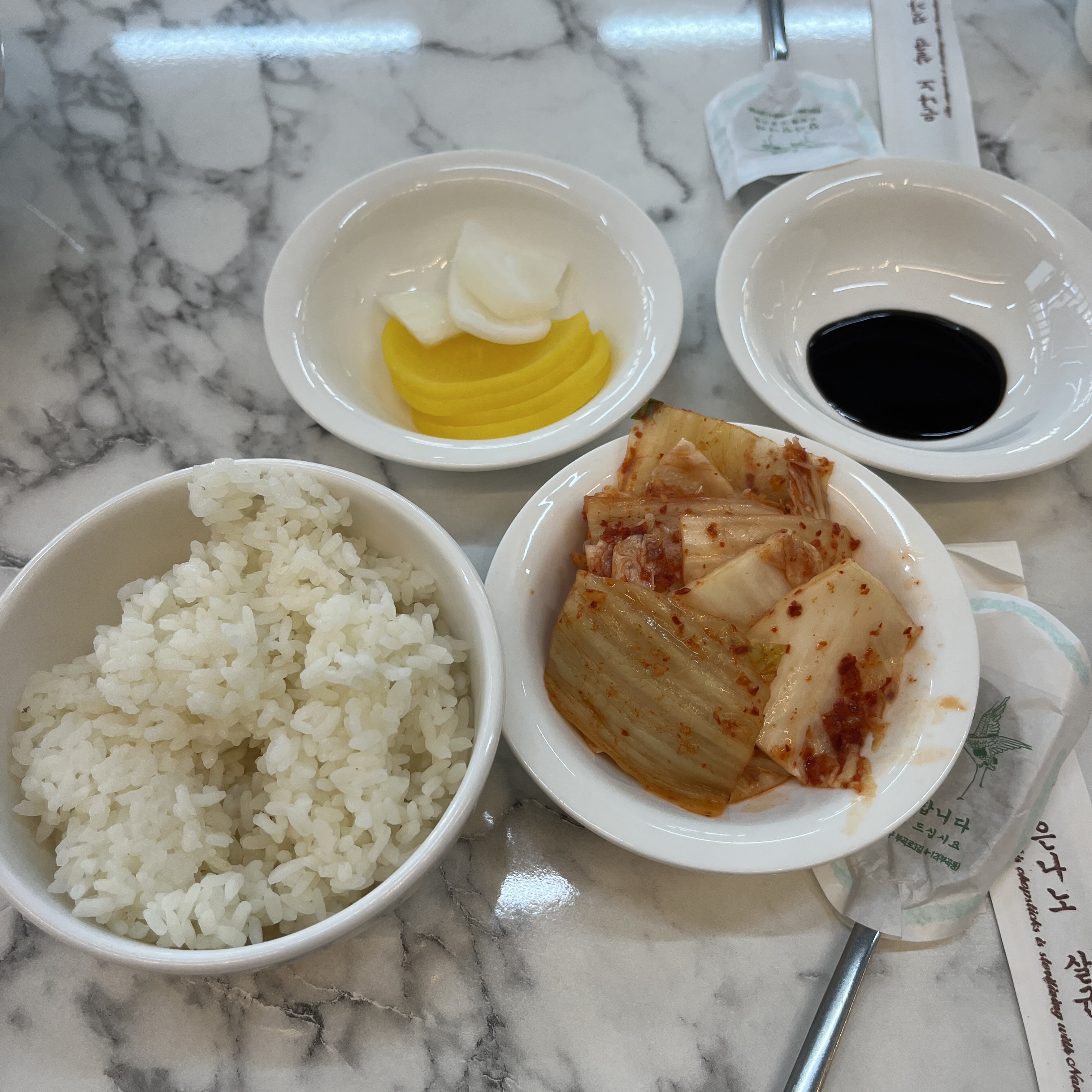 김치, 양파, 단무지, 그리고 밥이 제공됩니다! 무려 밥이!!ㅎㅎ