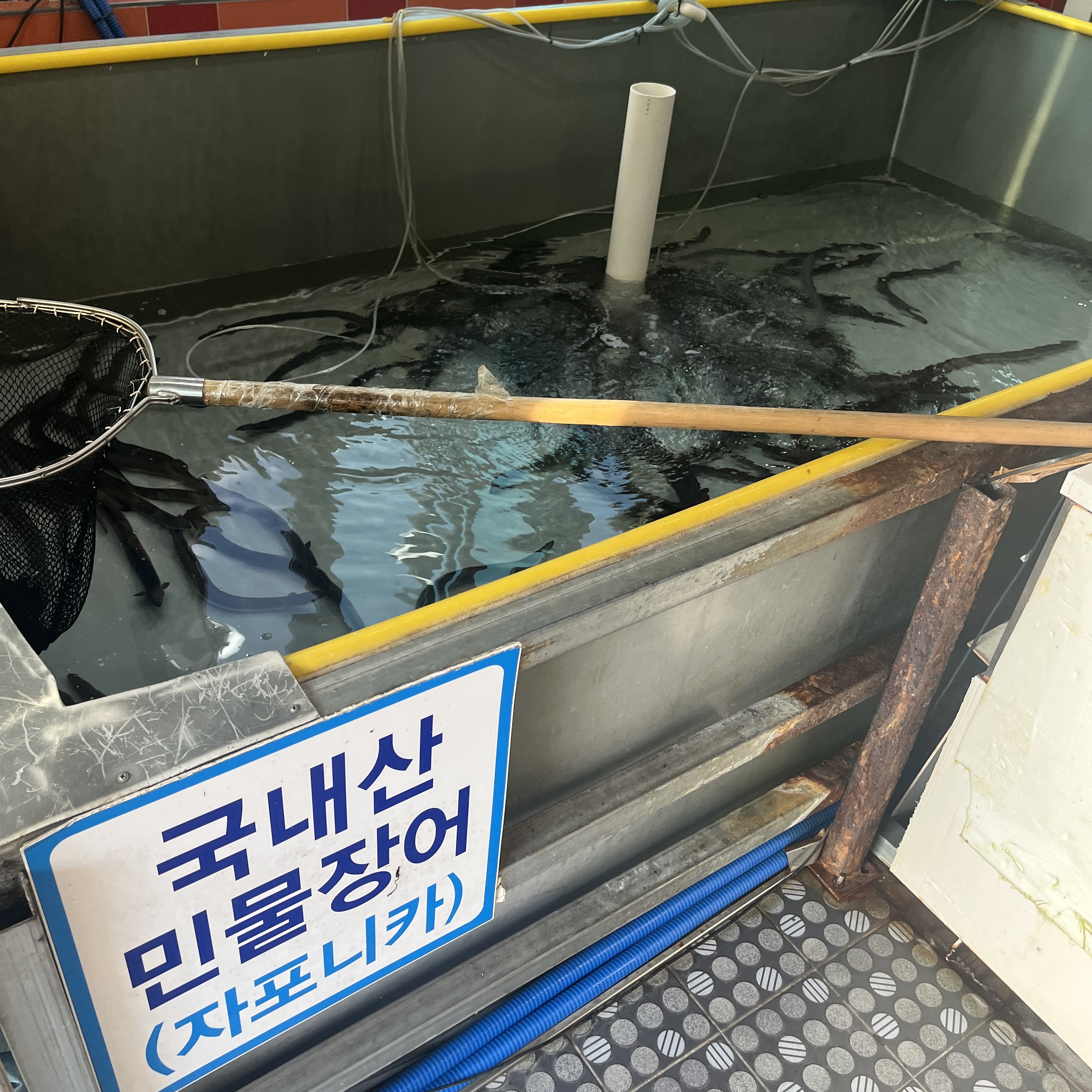 요렇게 가게 좌측에 살아있는 생물장어가 있습니다.