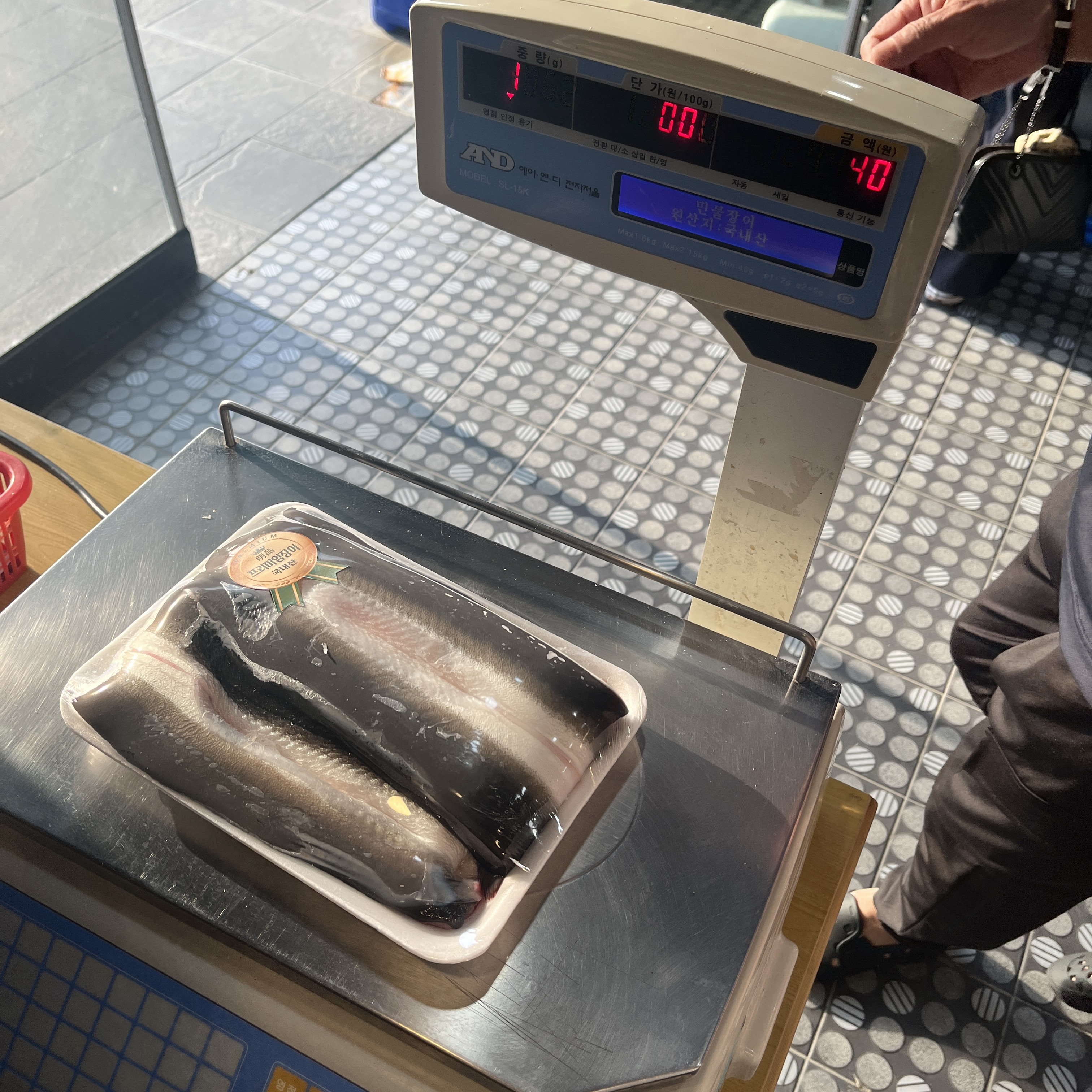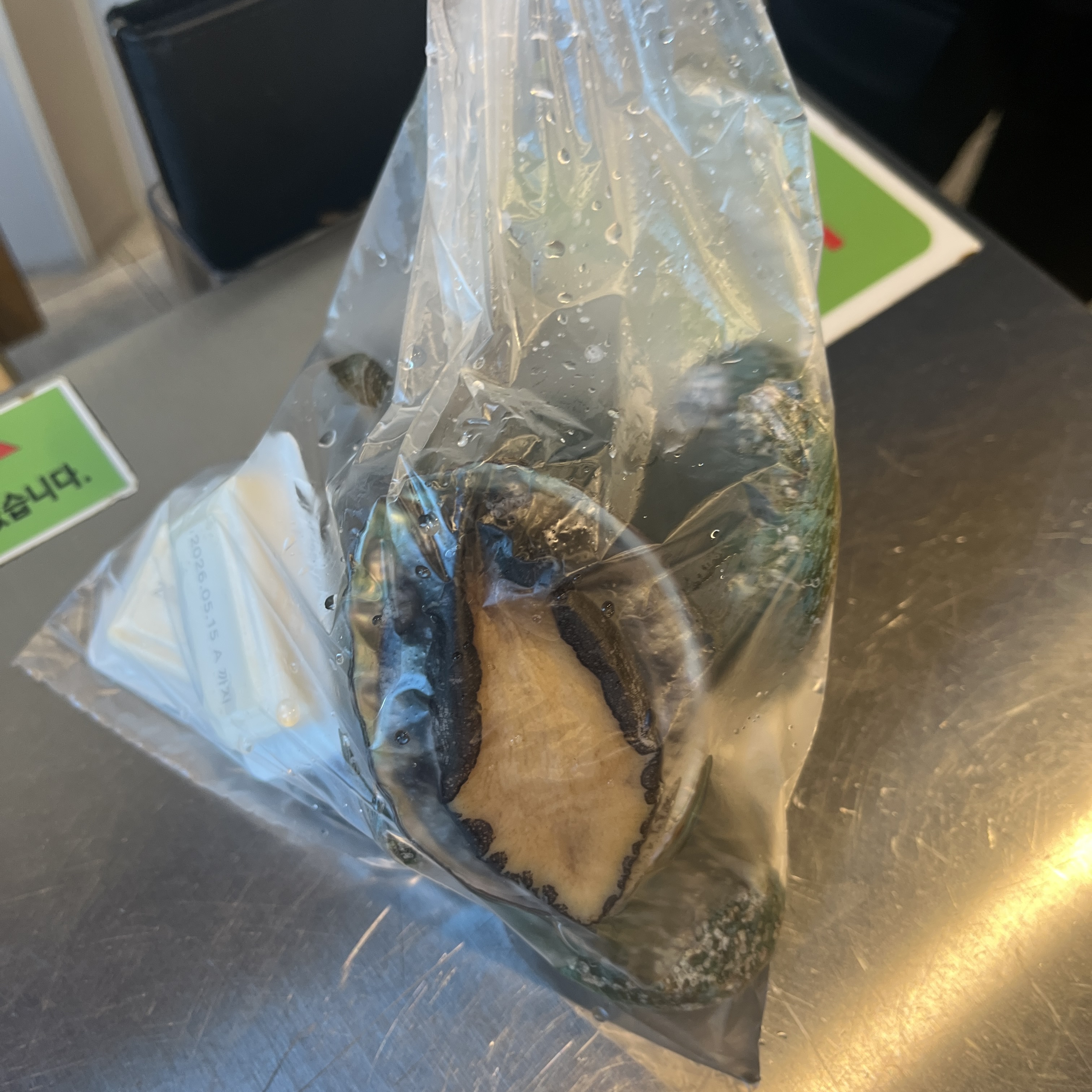 저희가 시킨 장어와, 그리고 한켠에 전복도 팔아서 전복도 한번 구매해봤습니다.