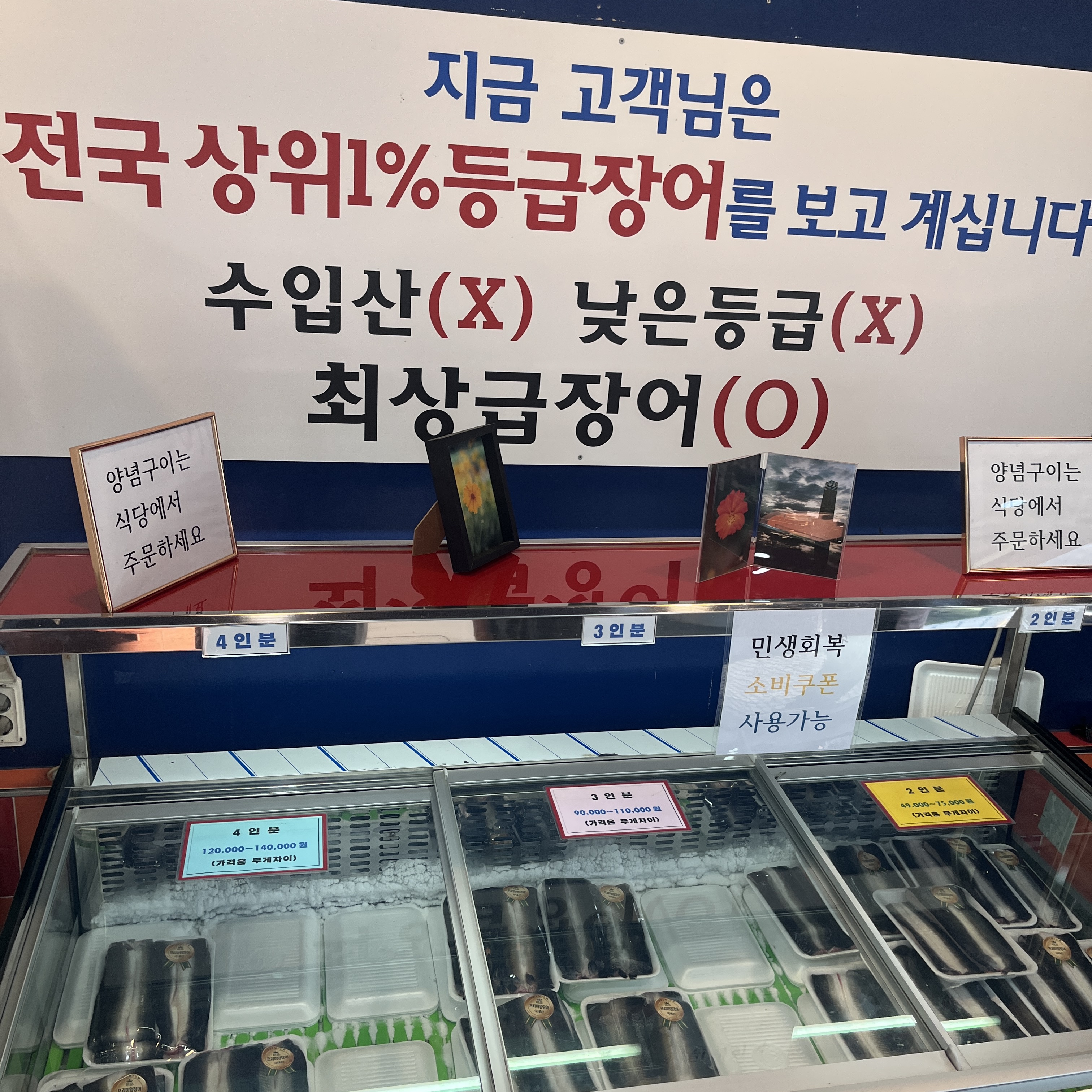 왠지 양식한 것을 여기다 가져다 놓고, 그떄그때 잡아서 파시는 것 같았습니다.