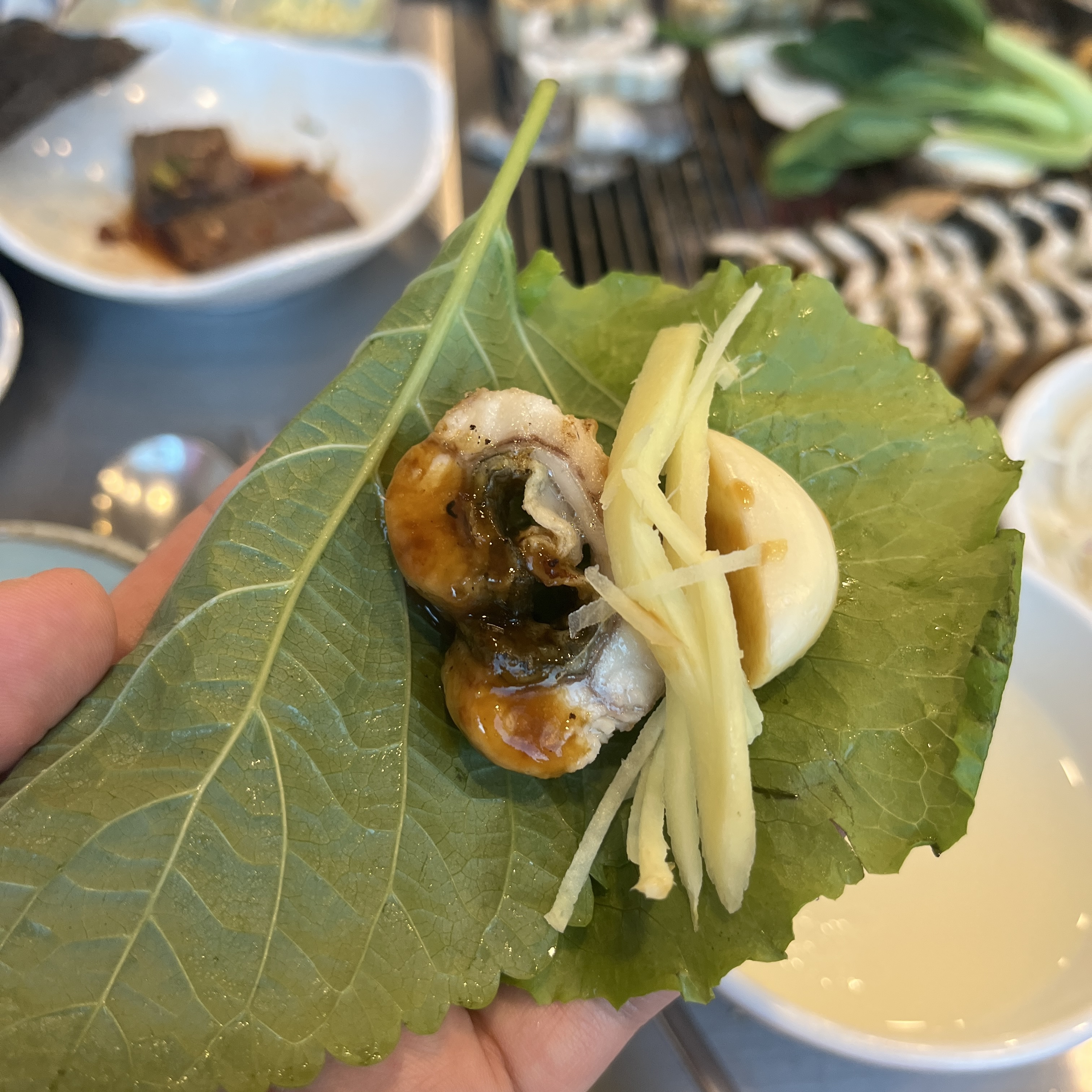 깻잎과도 먹어보고, 와사비 그리고 생김과도 먹어보고.