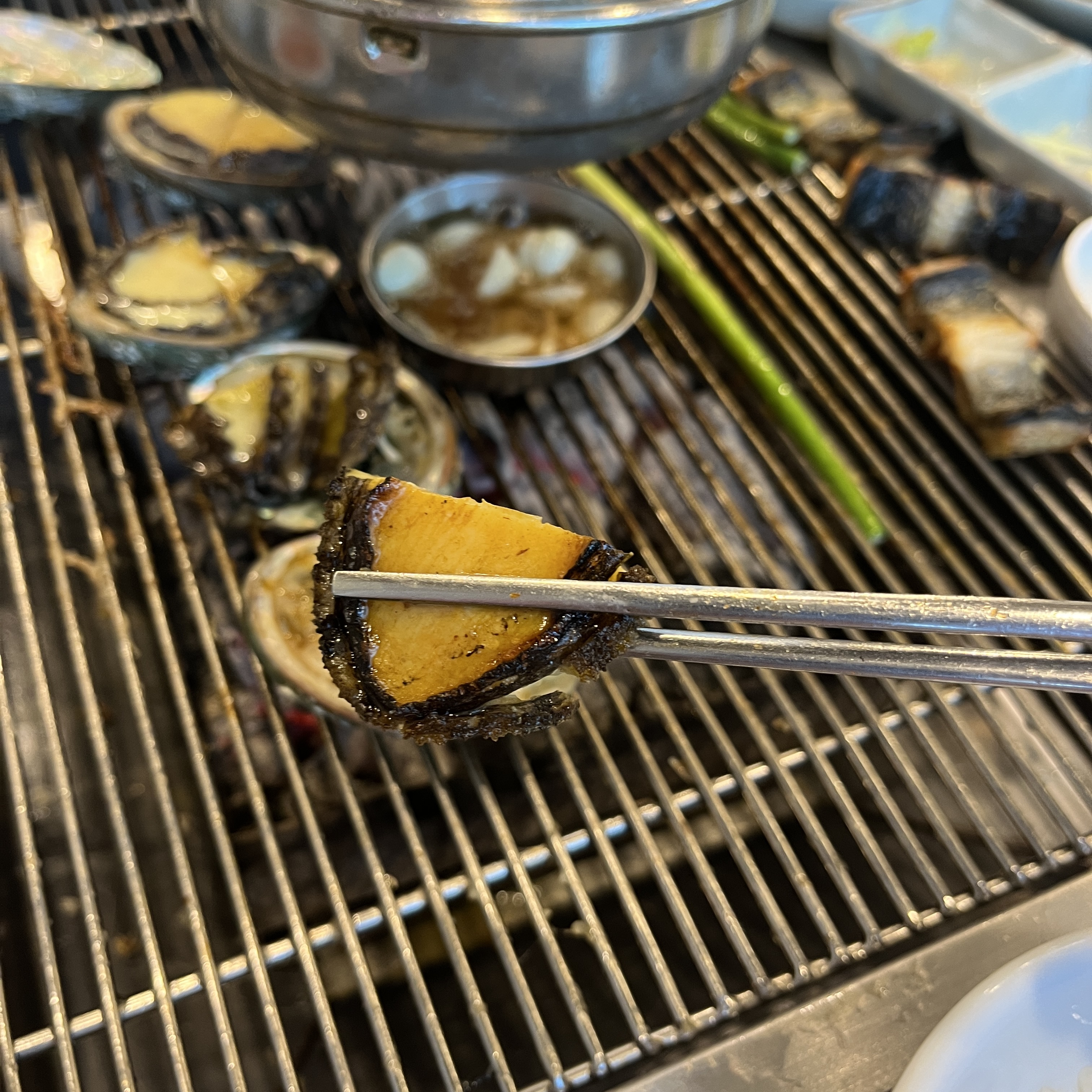 장어 거의 먹어가니, 이번엔 직원분께서 전복을 구워주셨습니다.