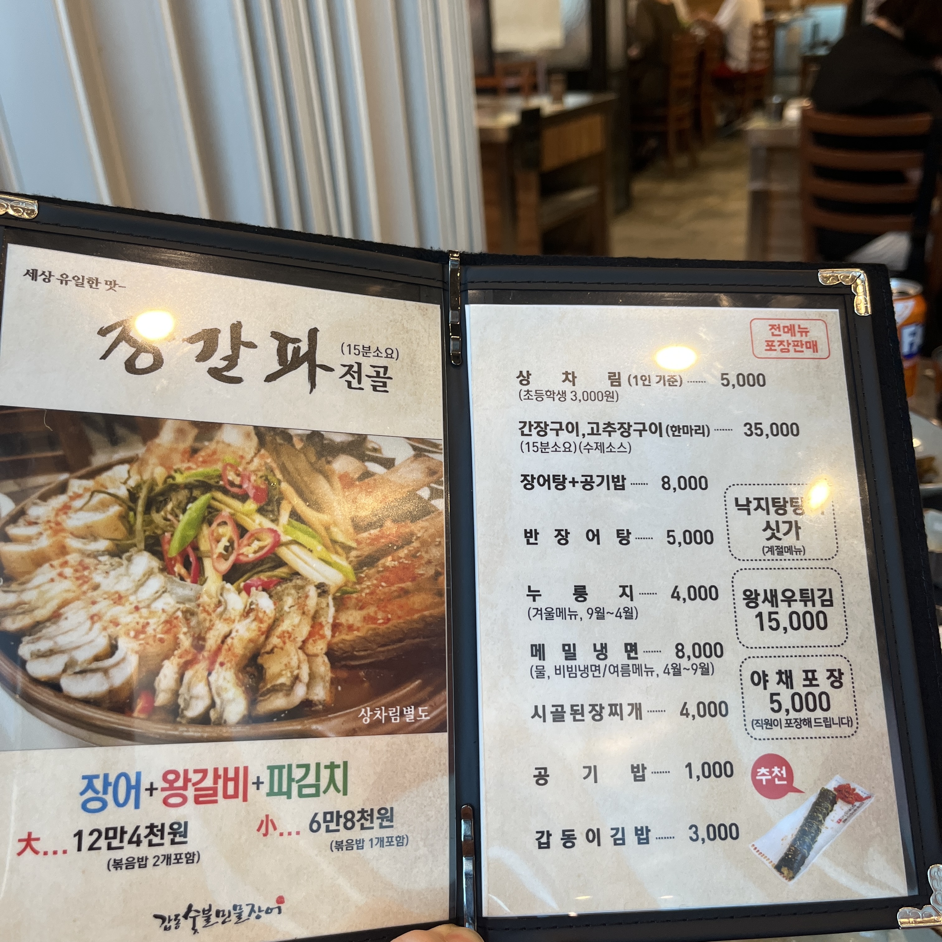 요거는 상차림 등에 대한 메뉴이고요, 메인인 장어는 가게 메인 입구 좌측으로 들어가셔서 직접 계산하고 가져오셔야 합니다.