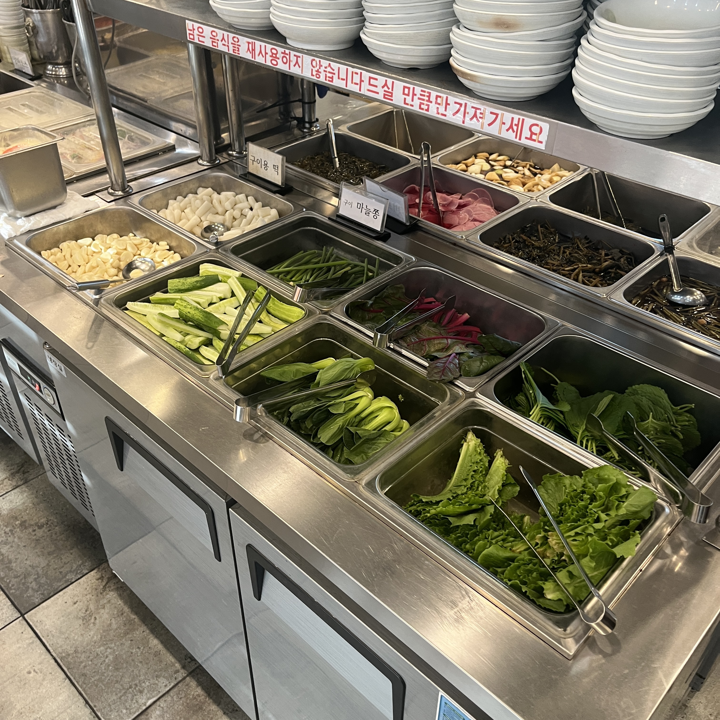 여기 장점 중 하나가 위에서도 얘기했지만, 셀프바에 있는 아주 다양한 밑반찬들과 다양한 조합으로 먹을 수 있다는 점도 장점이었습니당.