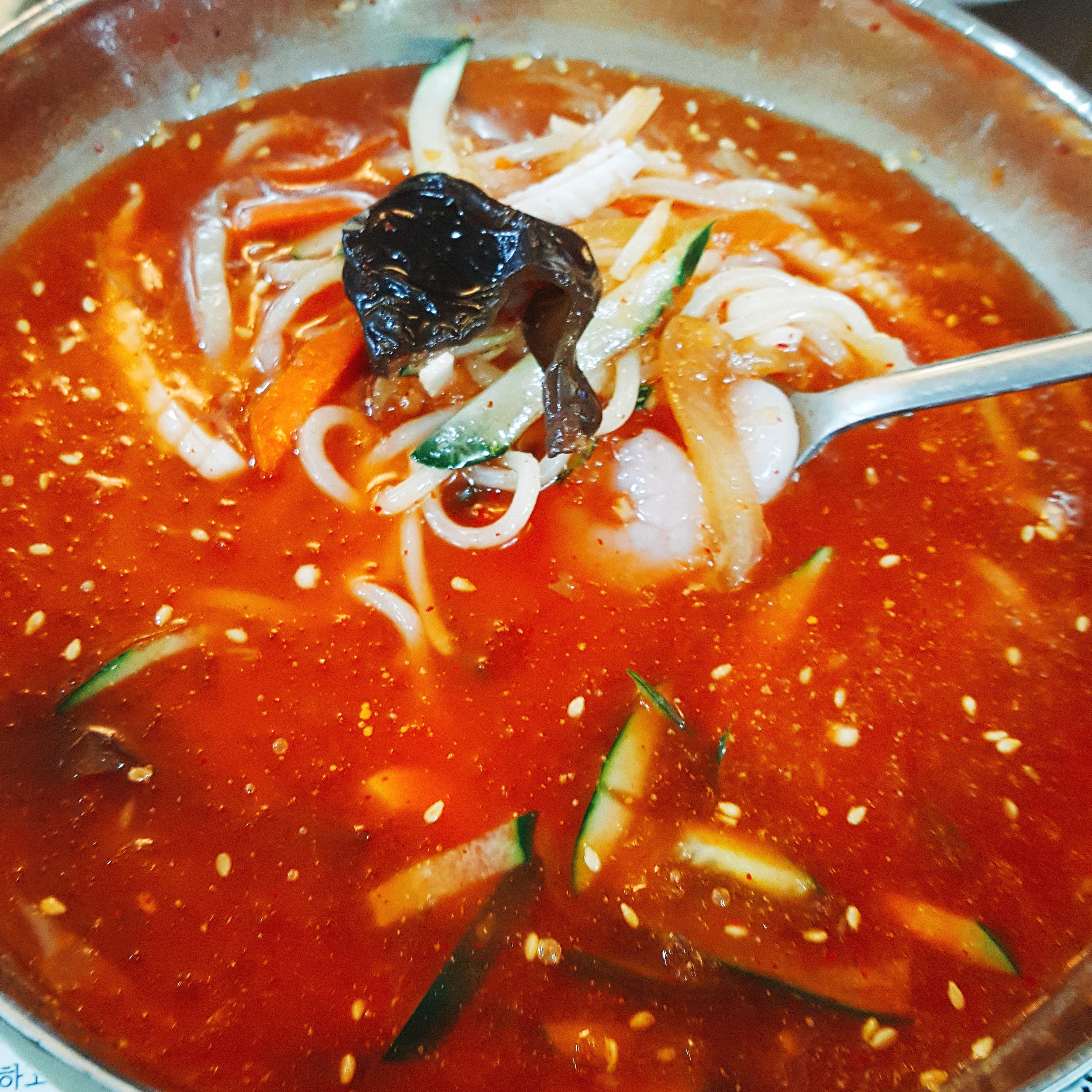 냉면으로 따지면.. 비빔냉면에 냉면육수를 겁나 부은 빨간냉면같은 맛이랄까요..
