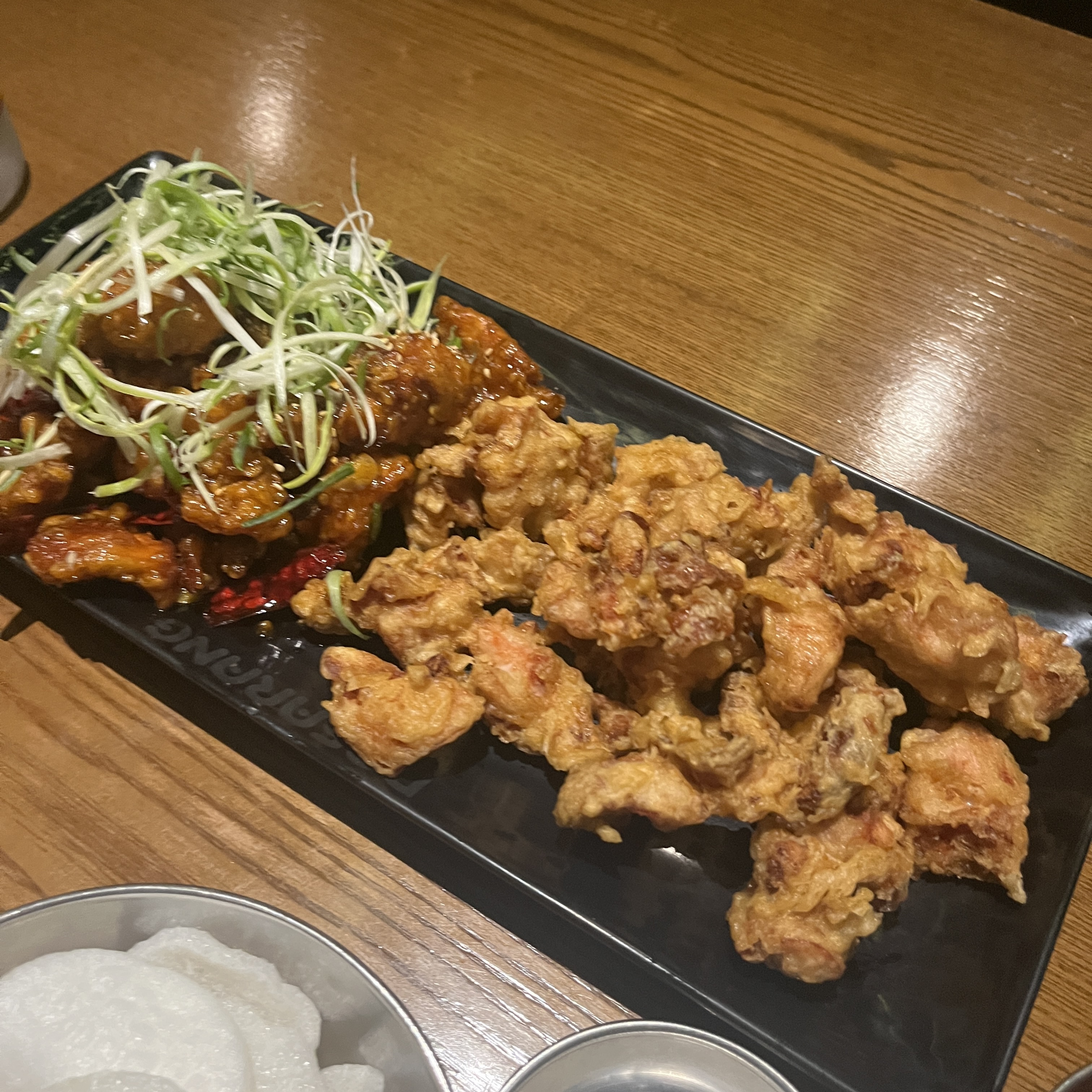 하지만 요것도 아주 맛났답니다. 양념치킨처럼 엄청 꾸덕하게 양념이 묻어있지 않으면서, 끝맛에 매운맛이 쌱 올라오는게 깔끔하게 매운맛이어요.