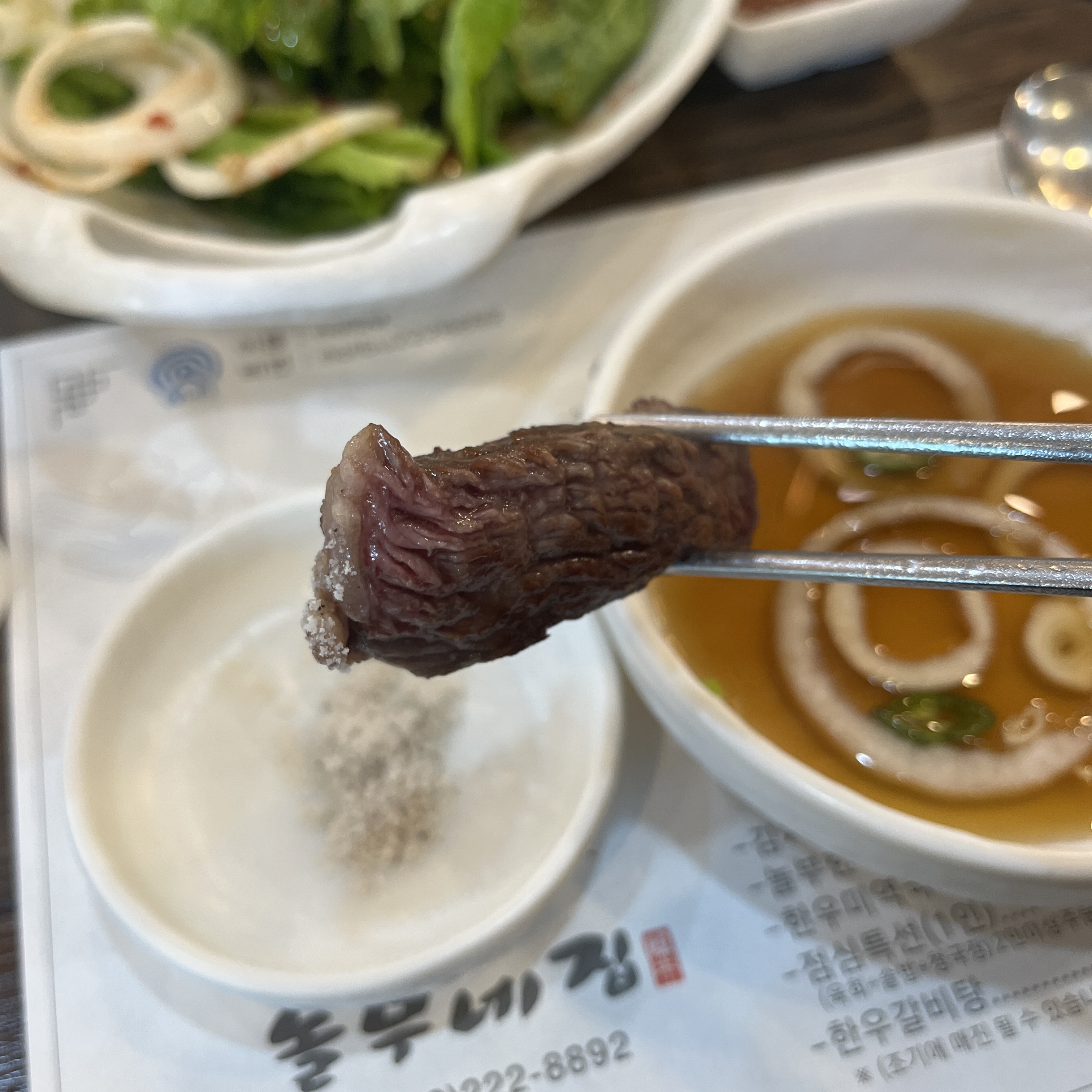 소금 살짝 찍어먹으면 육향이 입안에 쫙~ 퍼집니다.