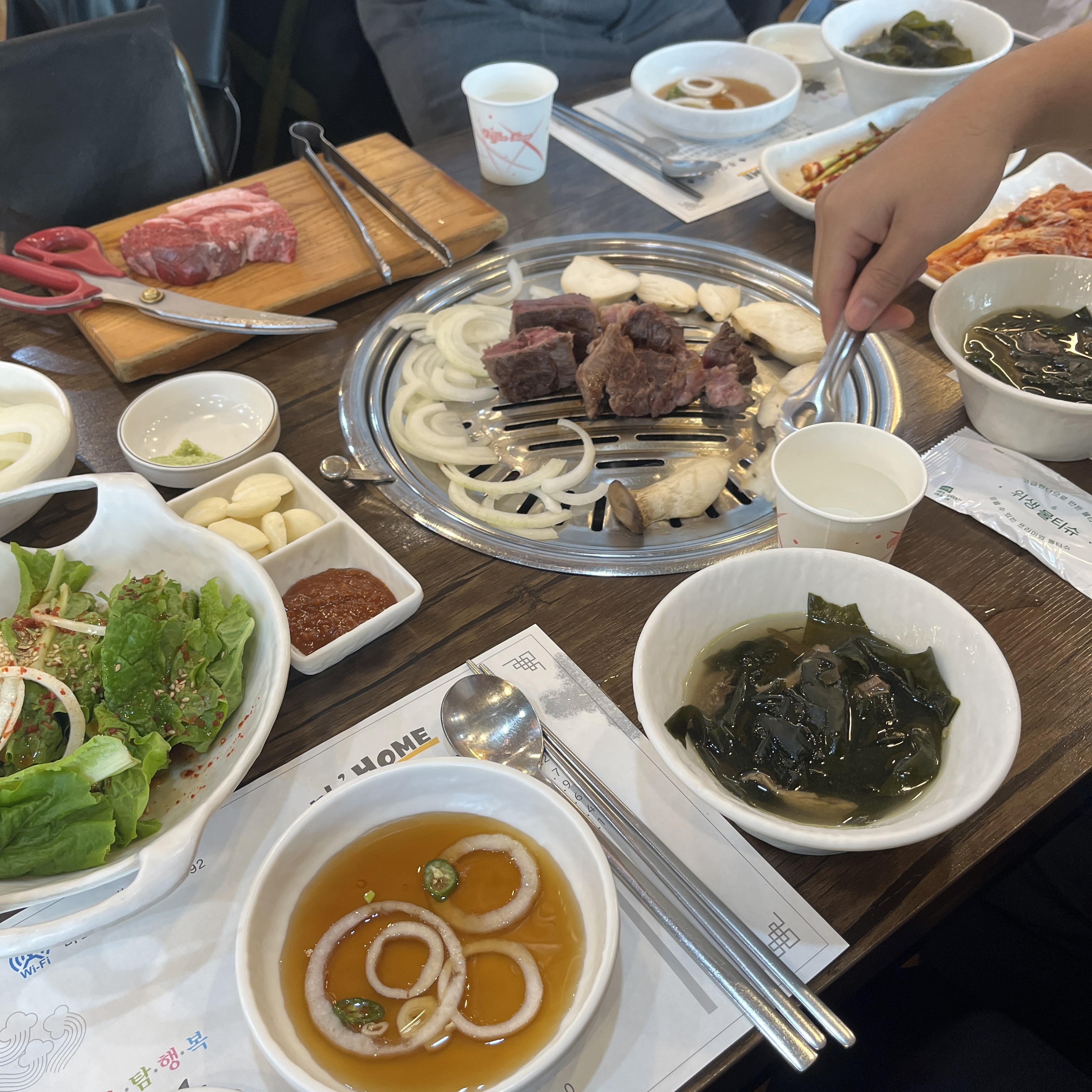 소고기 짜투리로 끓이는 미역국이 처음에 갔을 때 따뜻하게 반겨줍니다.