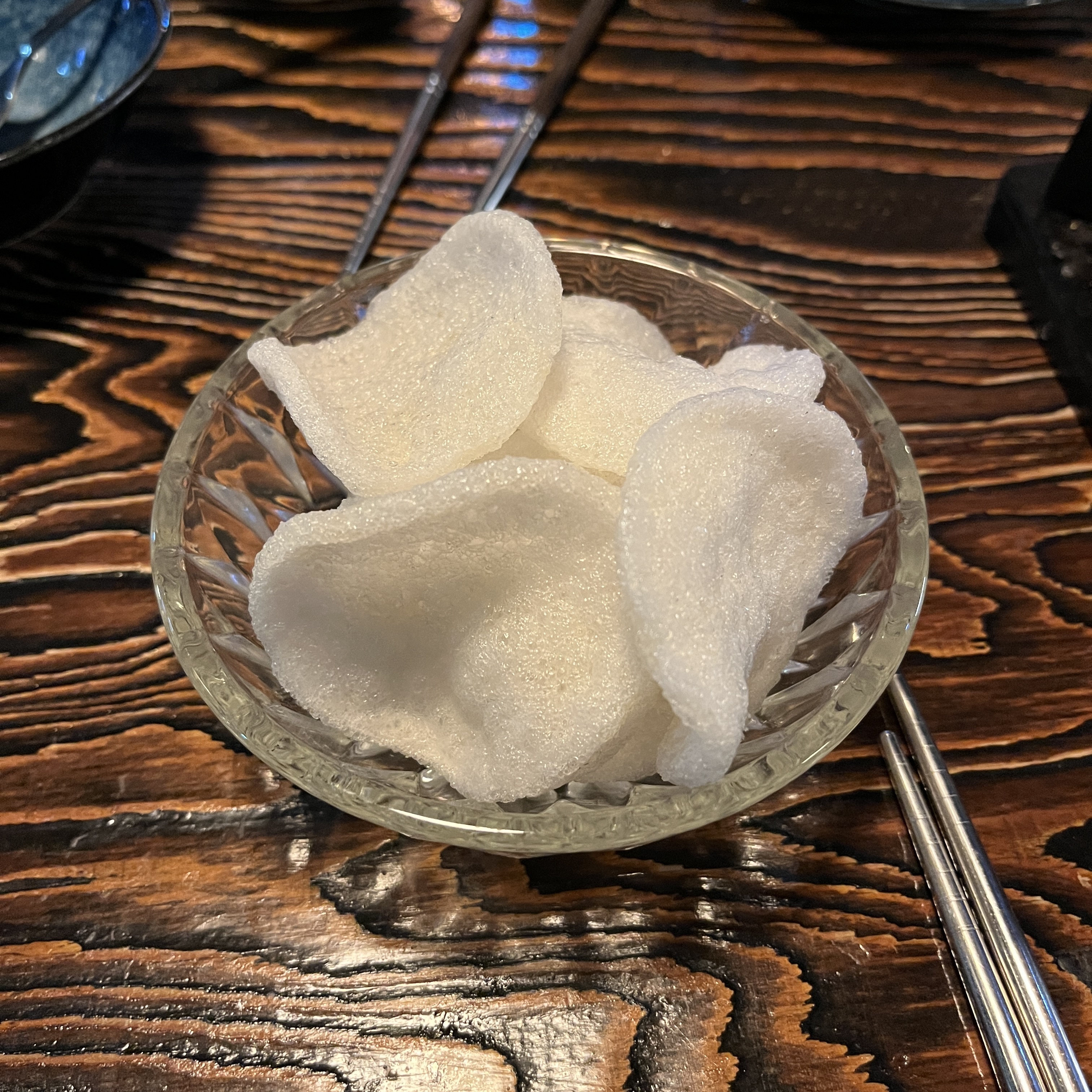 기본안주는 바삭하고 감칠맛 좋은 알새우칩으로 시작입니다~