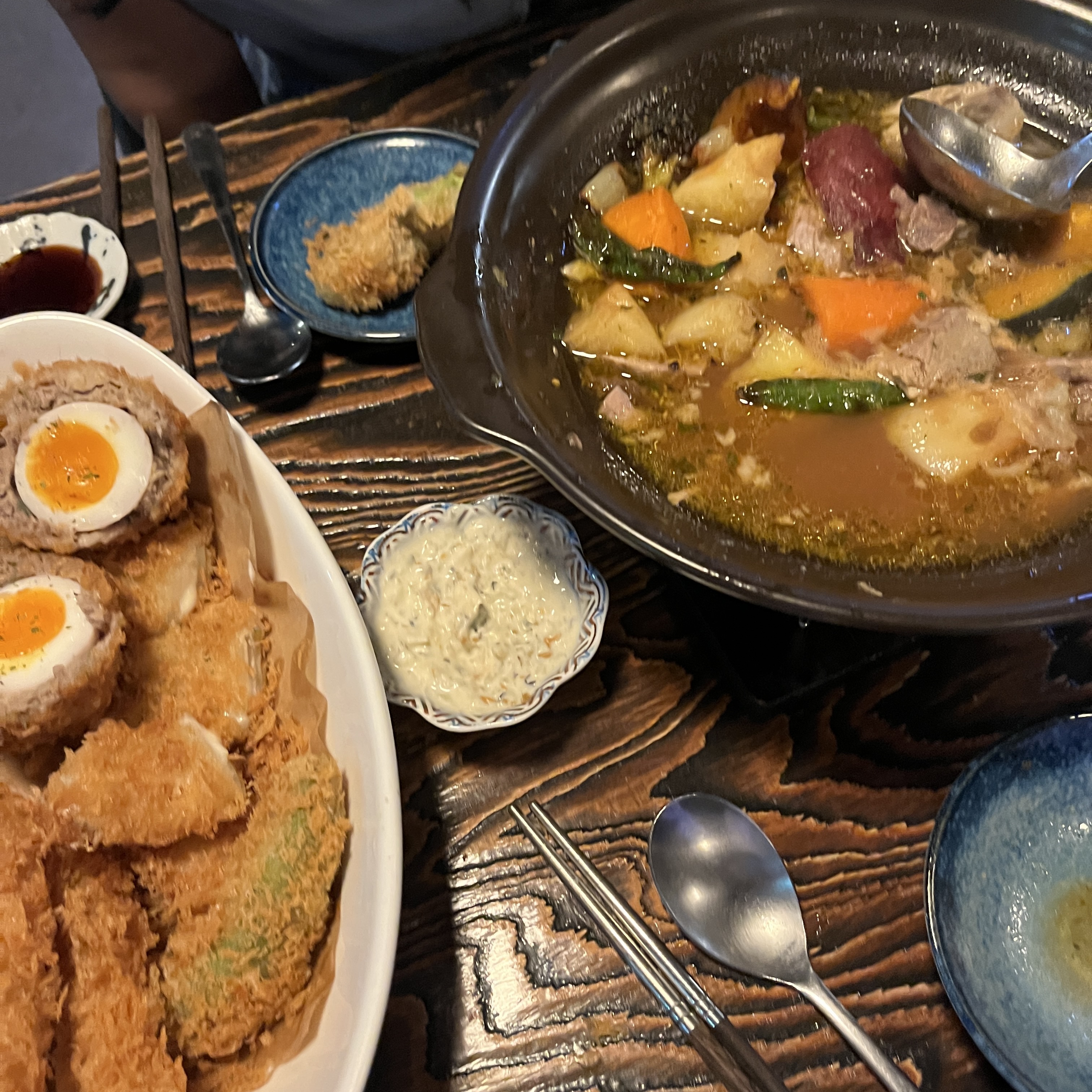 아니 여기 스프카레 진짜 좋습니다. 이게 처음엔 국물이 많네? 싶은 생각이 드는데, 이게 떠먹으면 떠먹을수록 얼큰하면서도 은은하게 나는 카레향과, 살짝 향신료 향도 나는게 진짜 일품이에요.