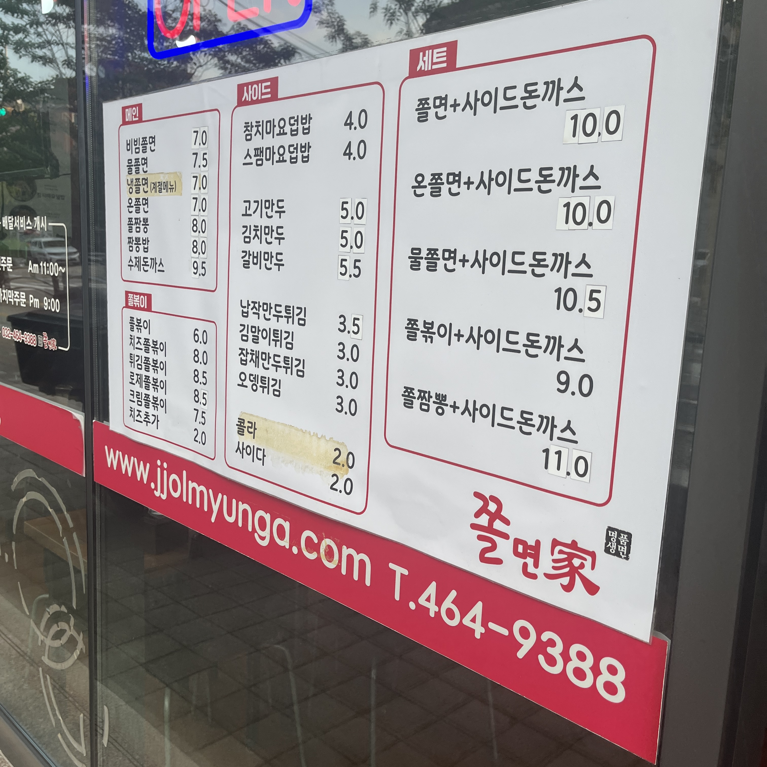 쫄면가 메뉴입니다.