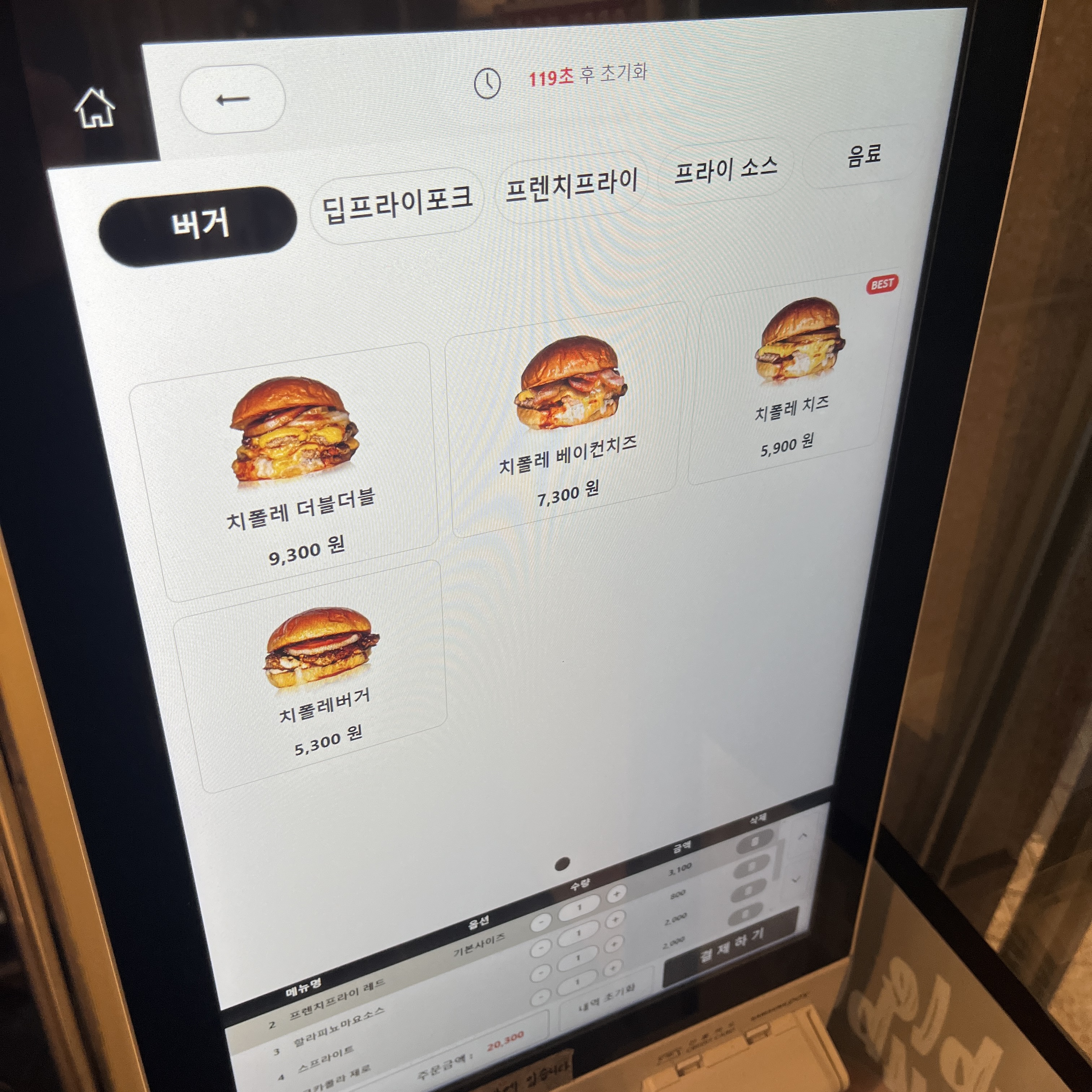 요것이 햄버거 메뉴입니다.