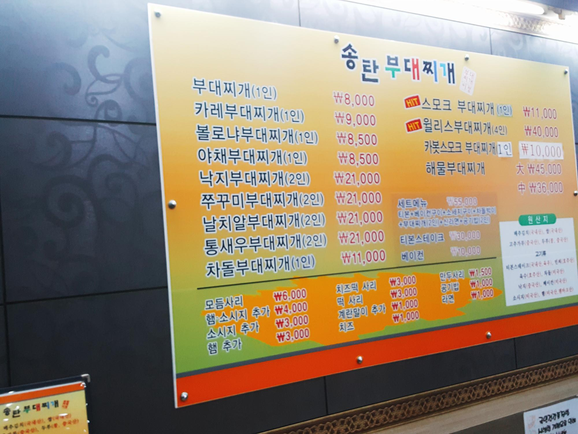 송탄부대찌개 메뉴입니다. 특징은 뭔가 희안한 부대찌개가 많다는 것입니다. 진짜 호기심이 갑니다.