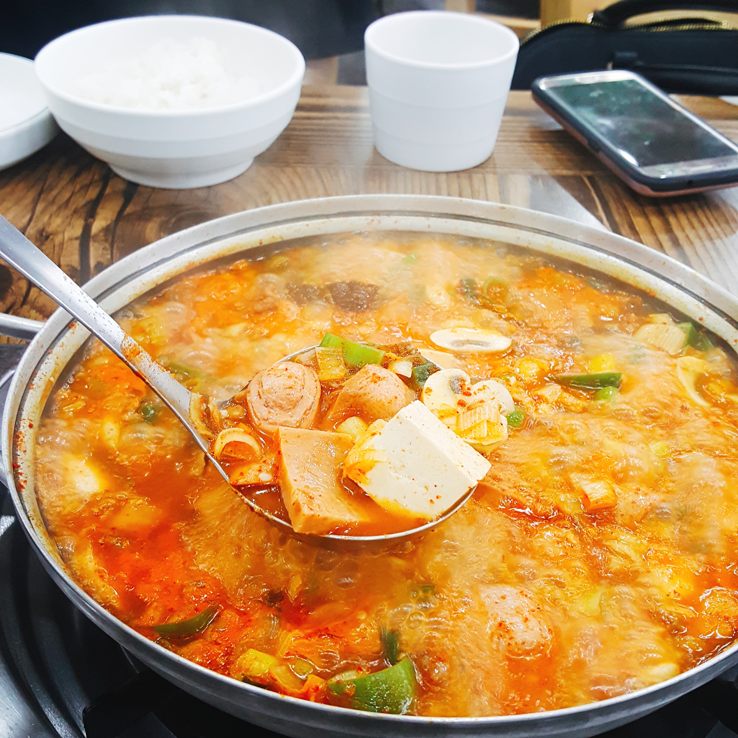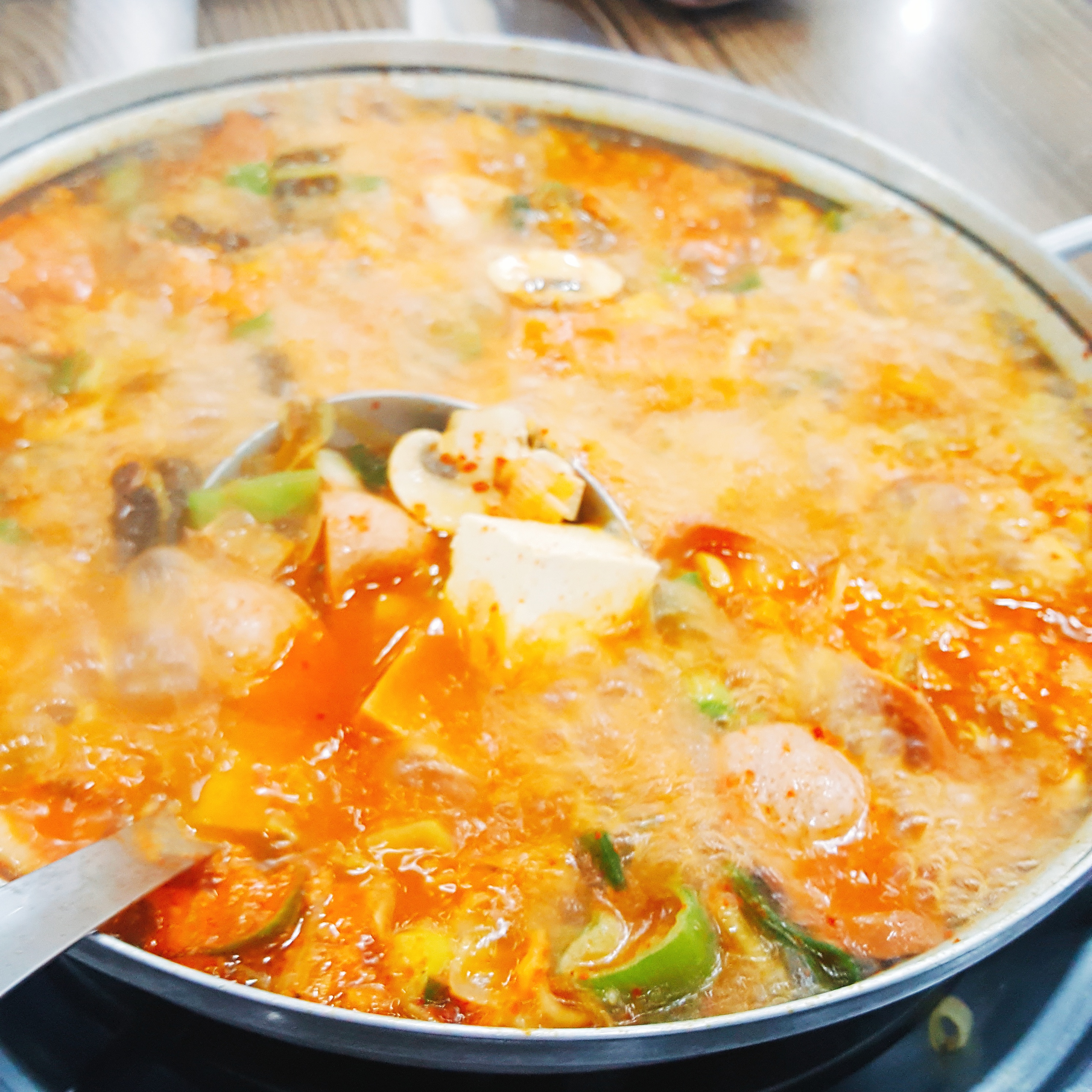 오늘하루 뜨끈한 부대찌개, 햄맛이 강하게 나는 부대찌개가 끌리신다면!