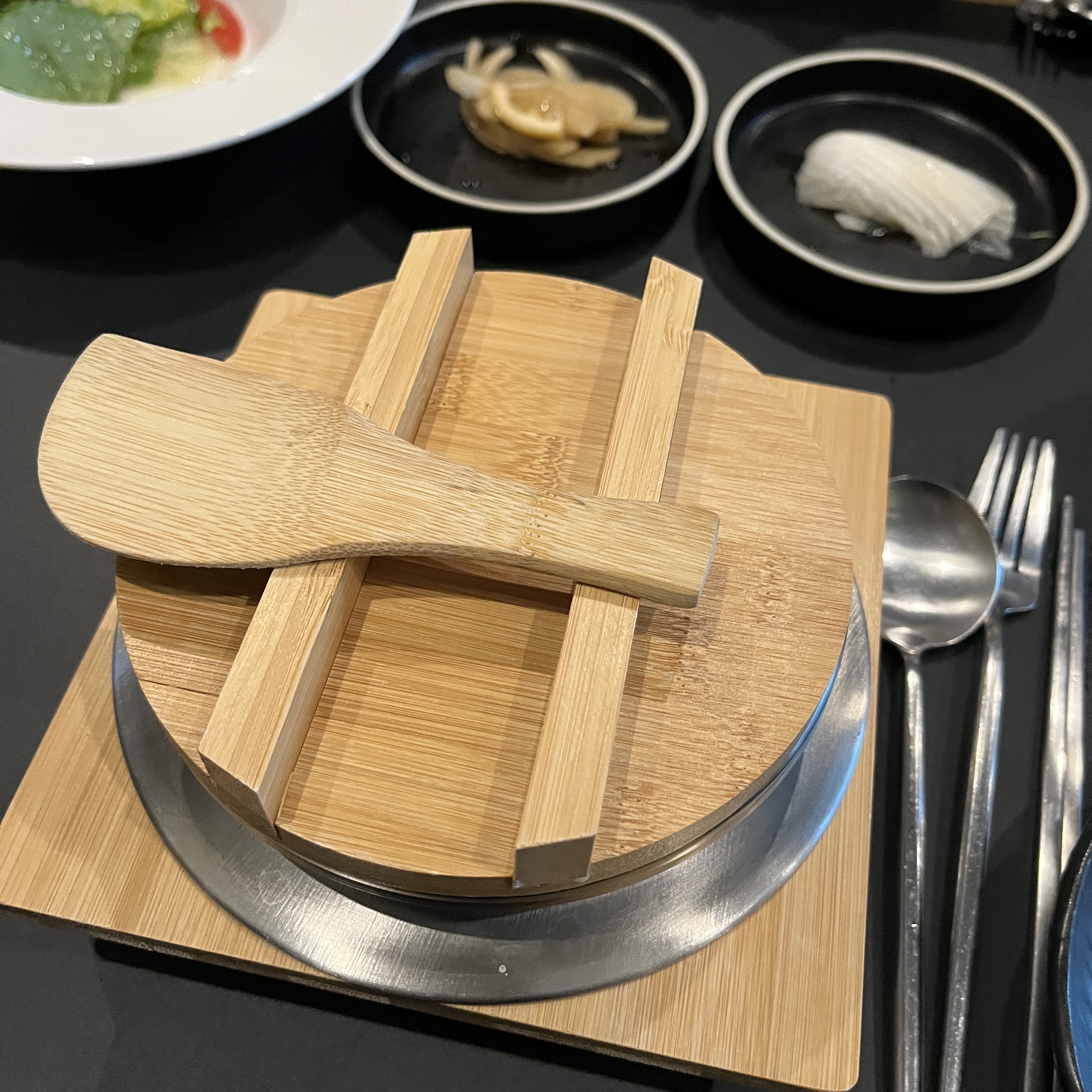 나무로 된 깔끔한 뚜껑과, 깔끔한 나무주걱이 함께 제공됩니다.
