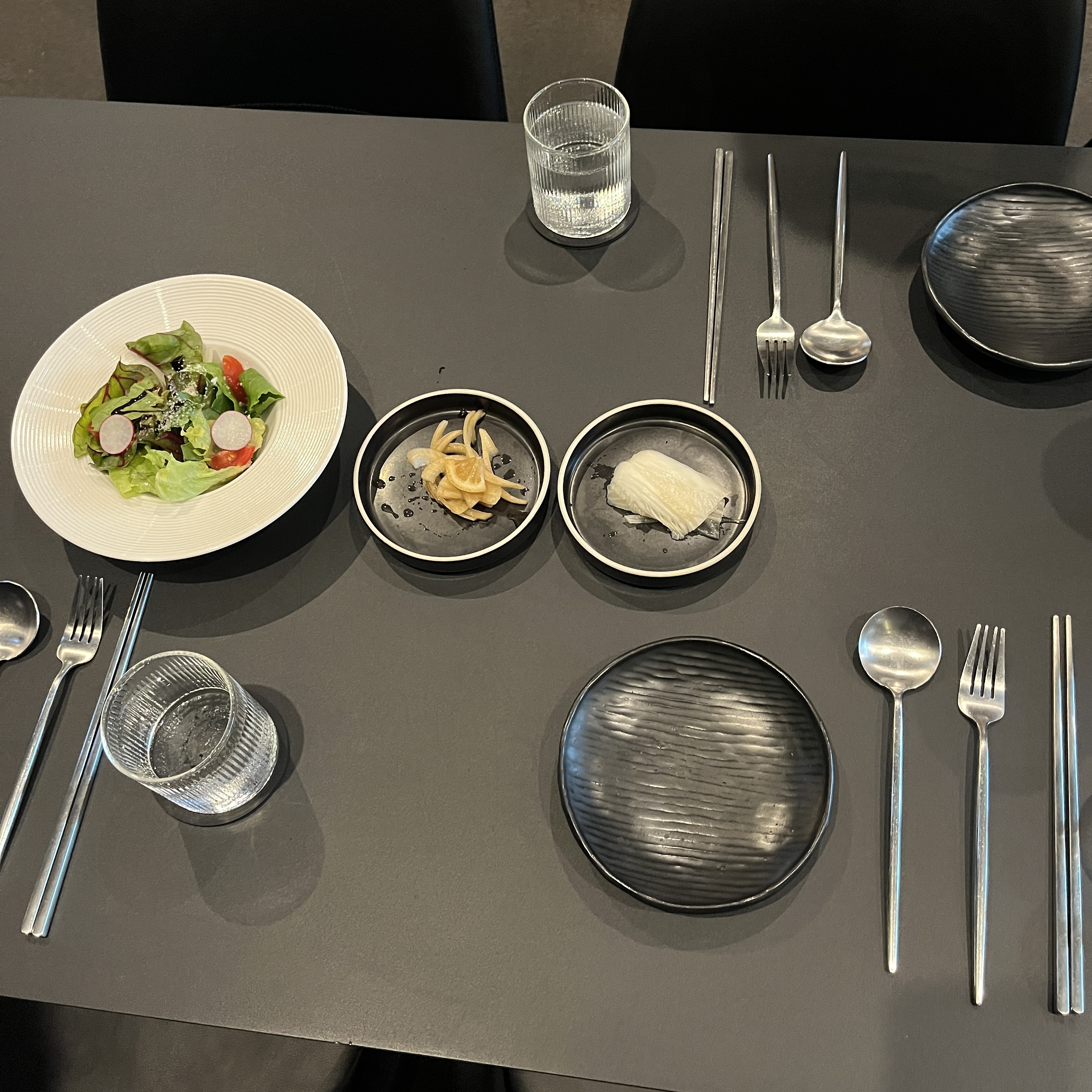 솥밥을 먹으러 왔는데 샐러드로 시작한다니.. 조금 어색한 느낌? 이 들었지만, 치즈만 쨍하게 나는 상큼한 샐러드는 식전에 먹기 딱 좋았습니다.