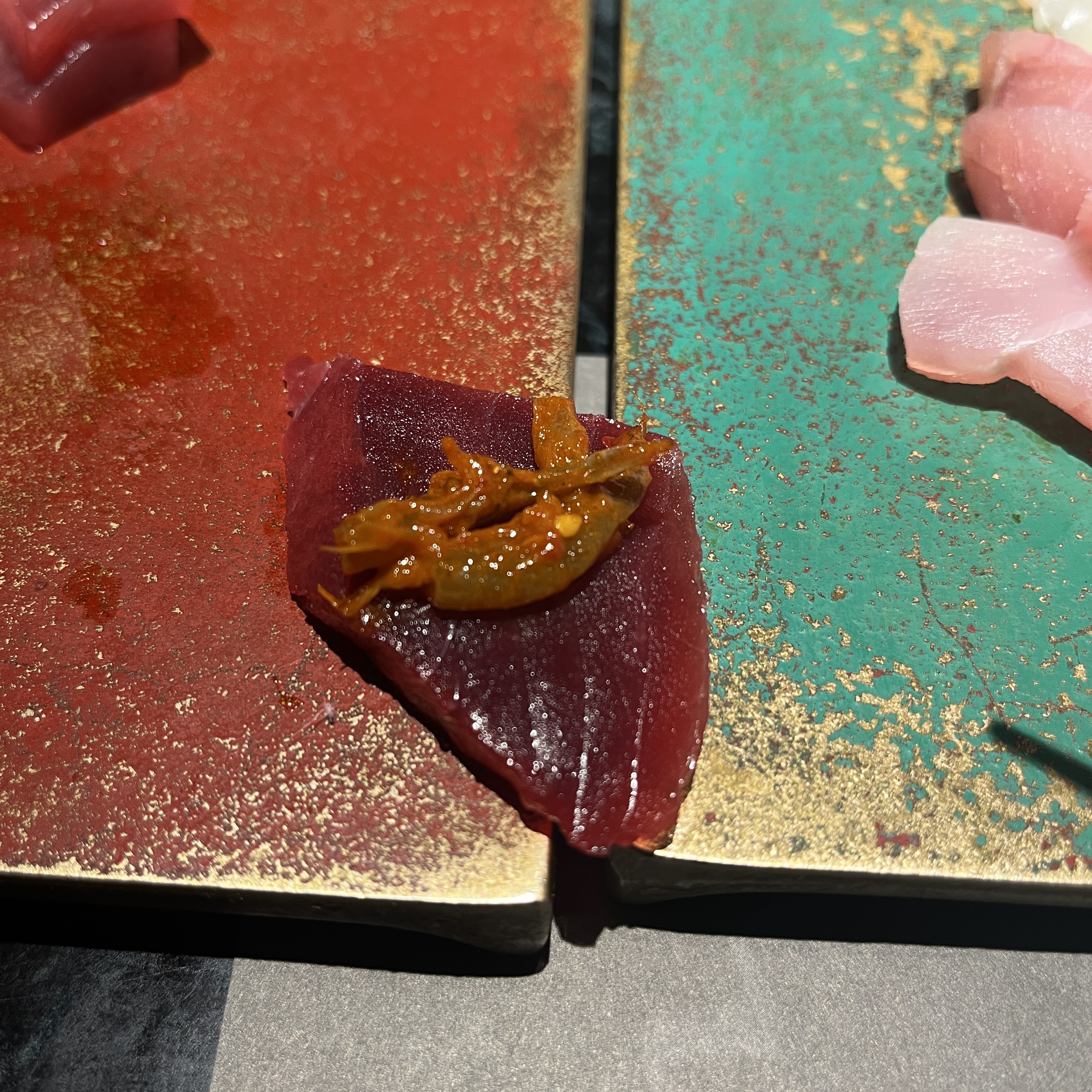 요 새우장도 요물인게. 젖갈이라 회의 맛을 헤칠까 싶었는데, 회에 조금 얹어먹으면 회맛은 회맛대로 잘 느껴지고, 끝에 이 젖갈 특유의 감칠맛과 매콤한 맛도 더해져서 이거 뭐 상상할 수 없는 맛이 나더라구요.