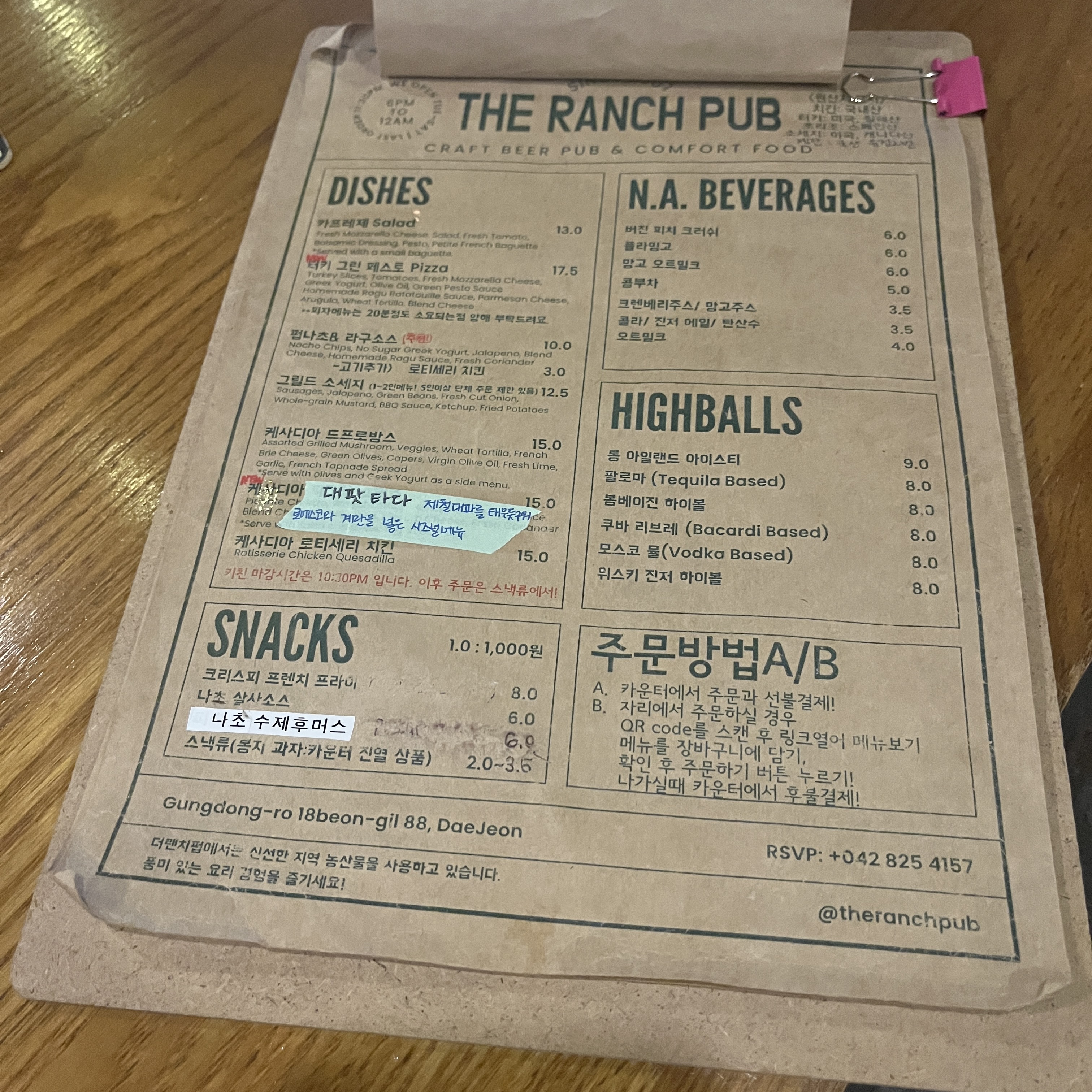 대전 유성 궁동 호프집, 브루어리 '더랜치펍'입니다.