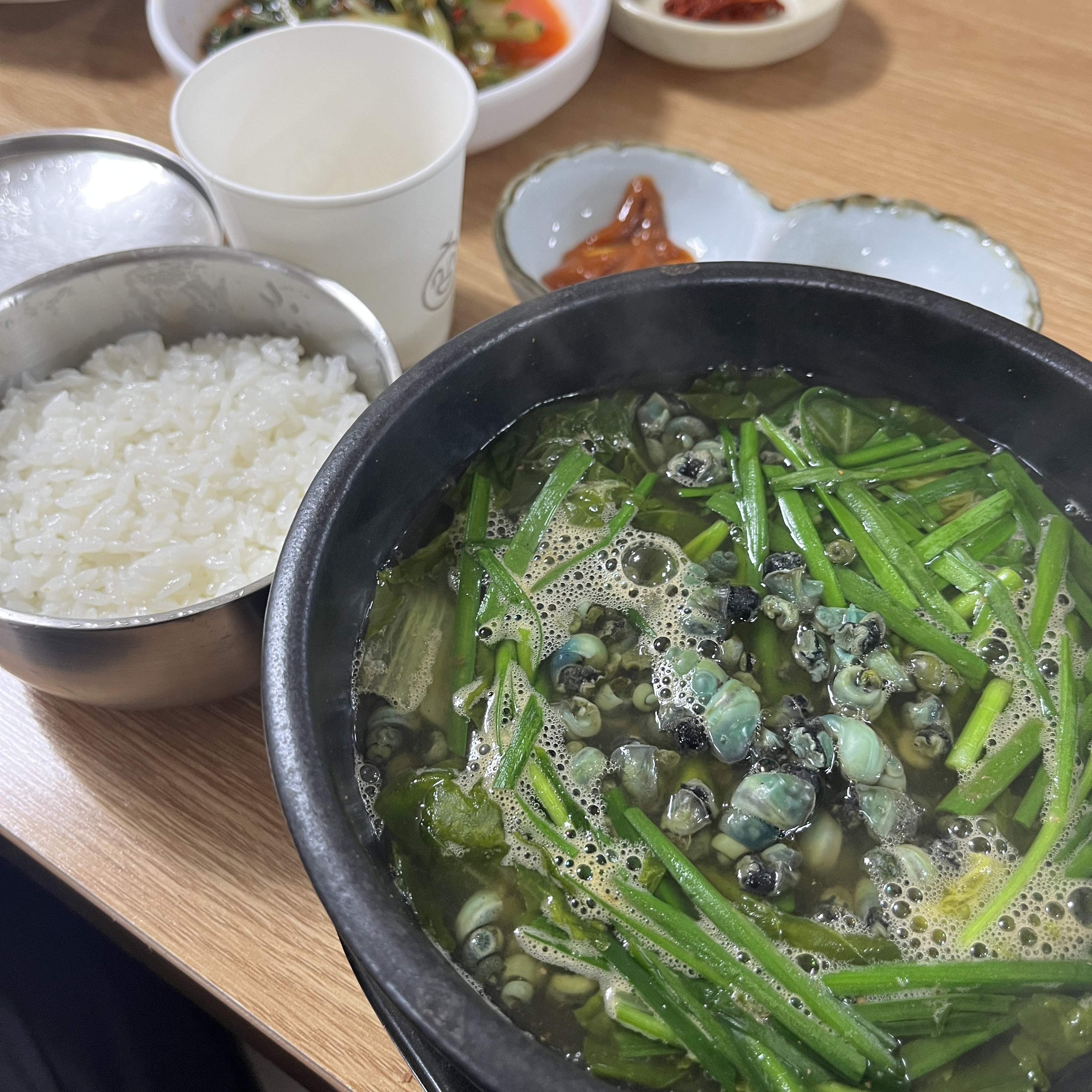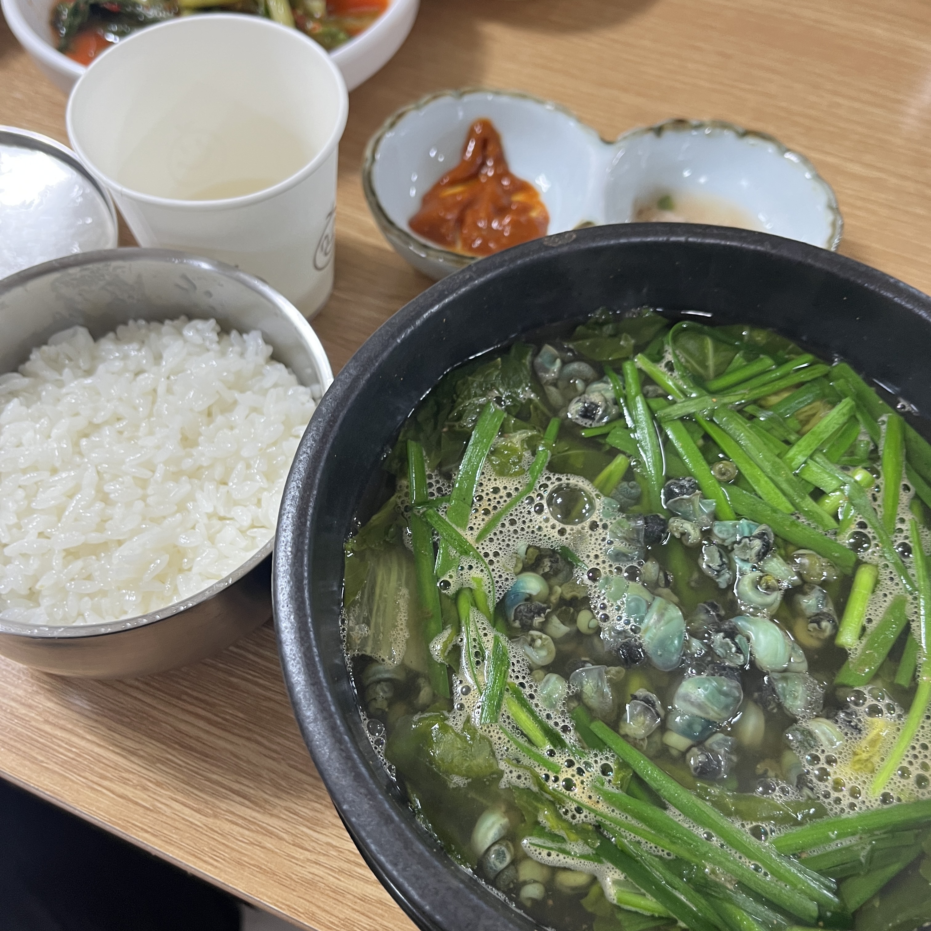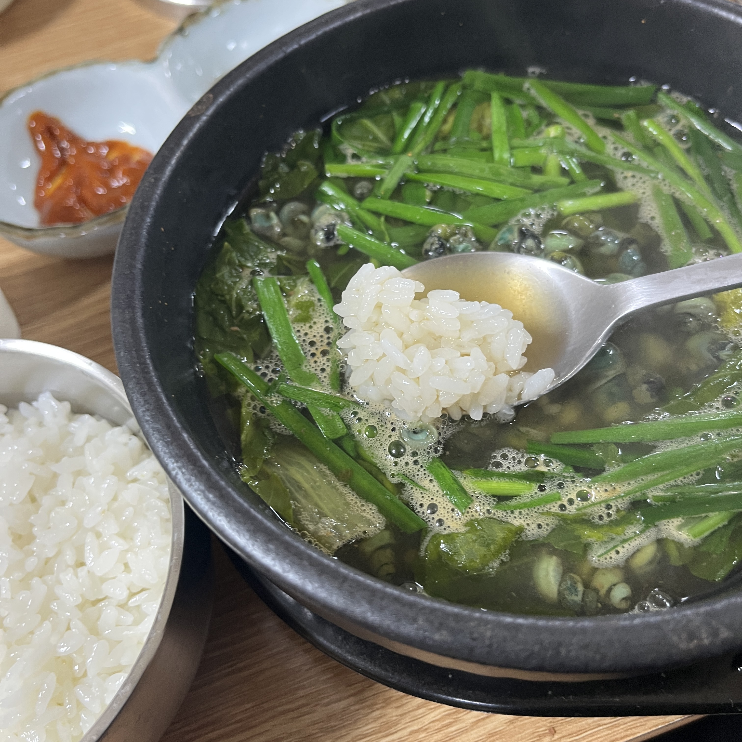 쫀득하게 잘 지어진 밥이 올갱이국과 아주 찰떡궁합이에요.
