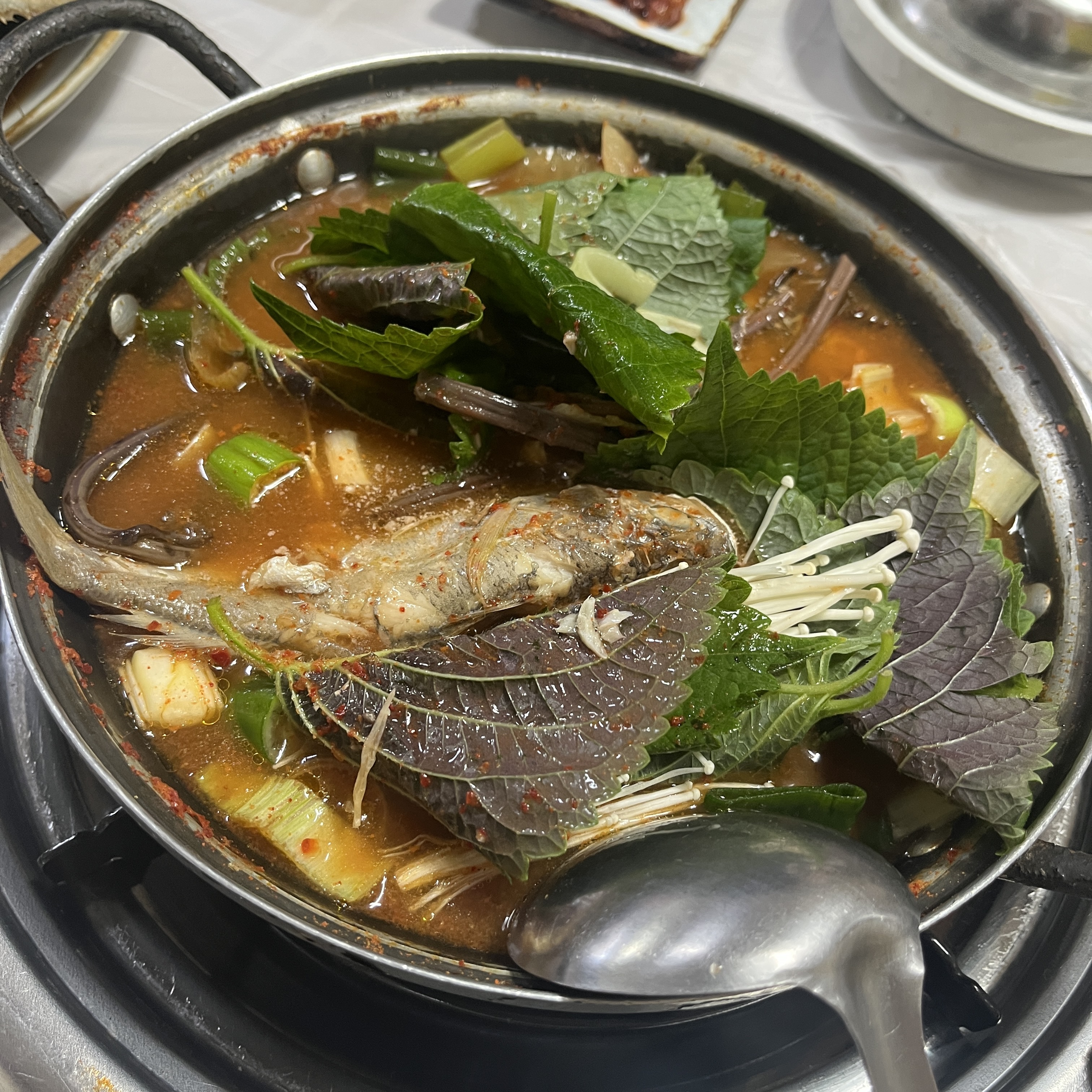 저 꺳잎... 저 찌개는 거의 쫄아들때까지 끓인다음에 깻잎 건져먹는맛이 아주 킥이에요.